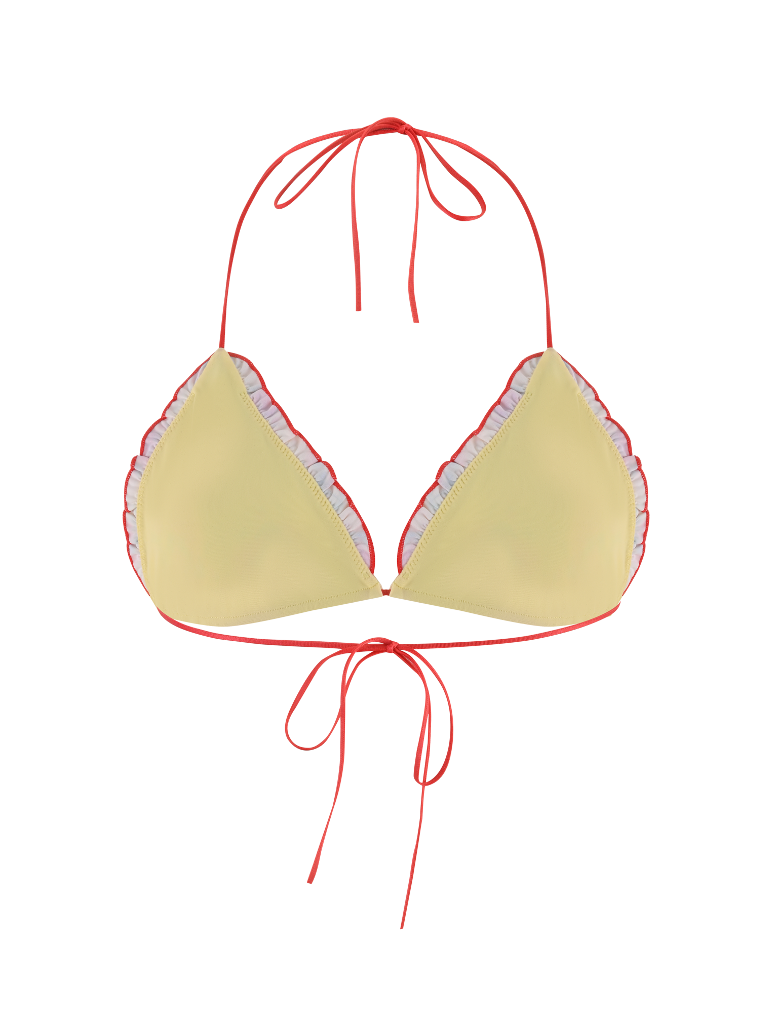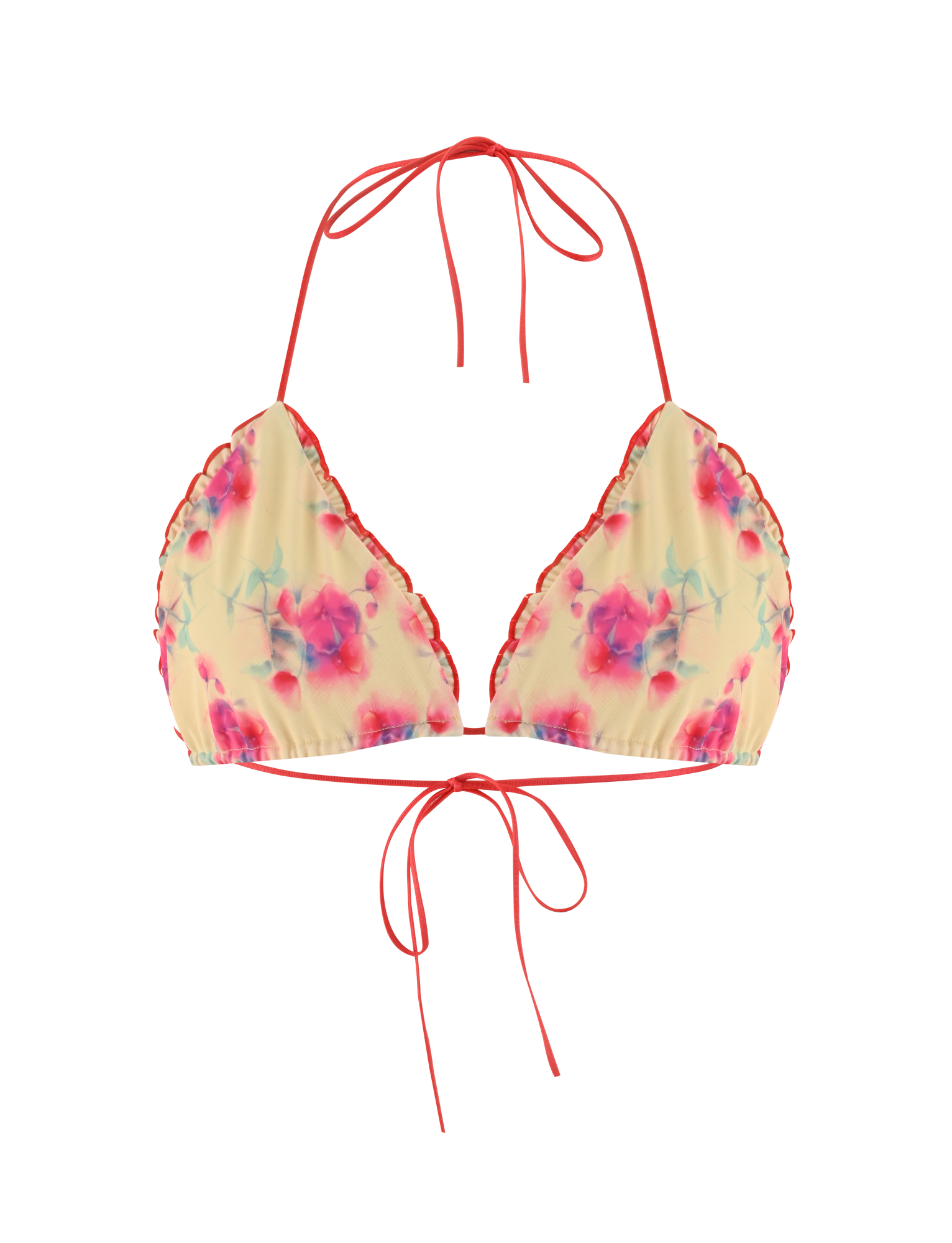 Floral printed yellow triangle bikini top
