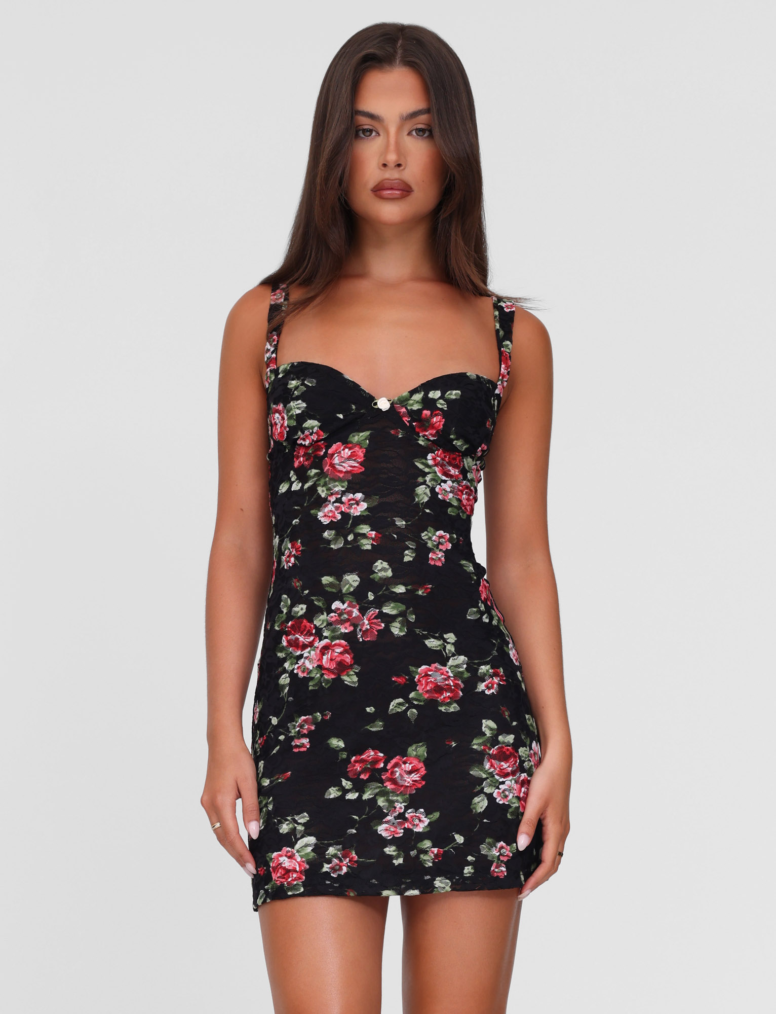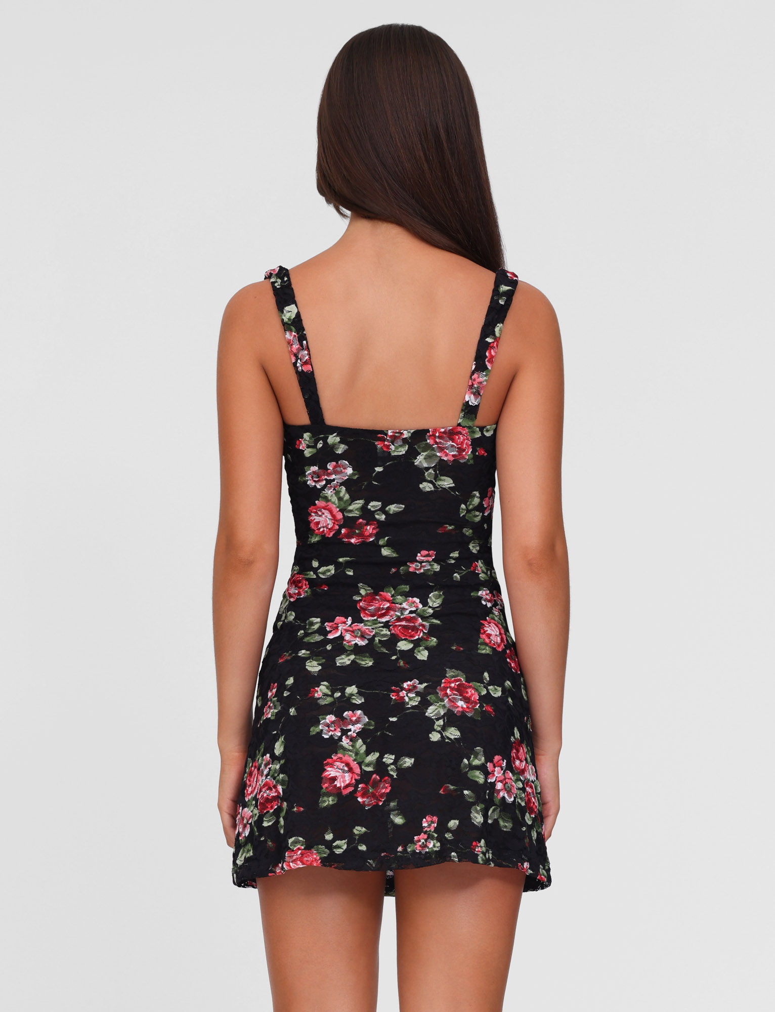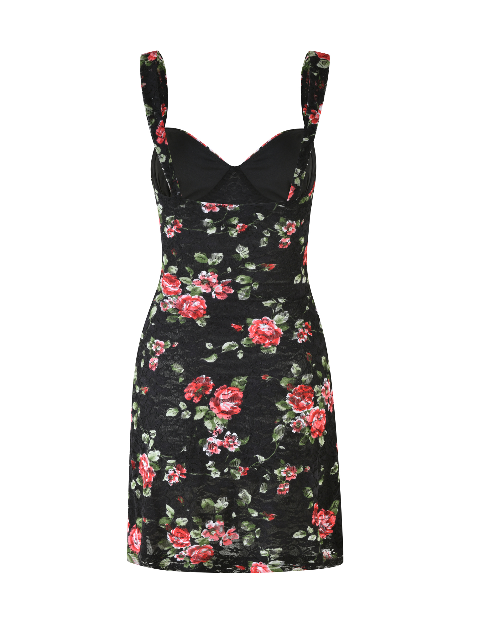 Rose printed stretch lace mini dress