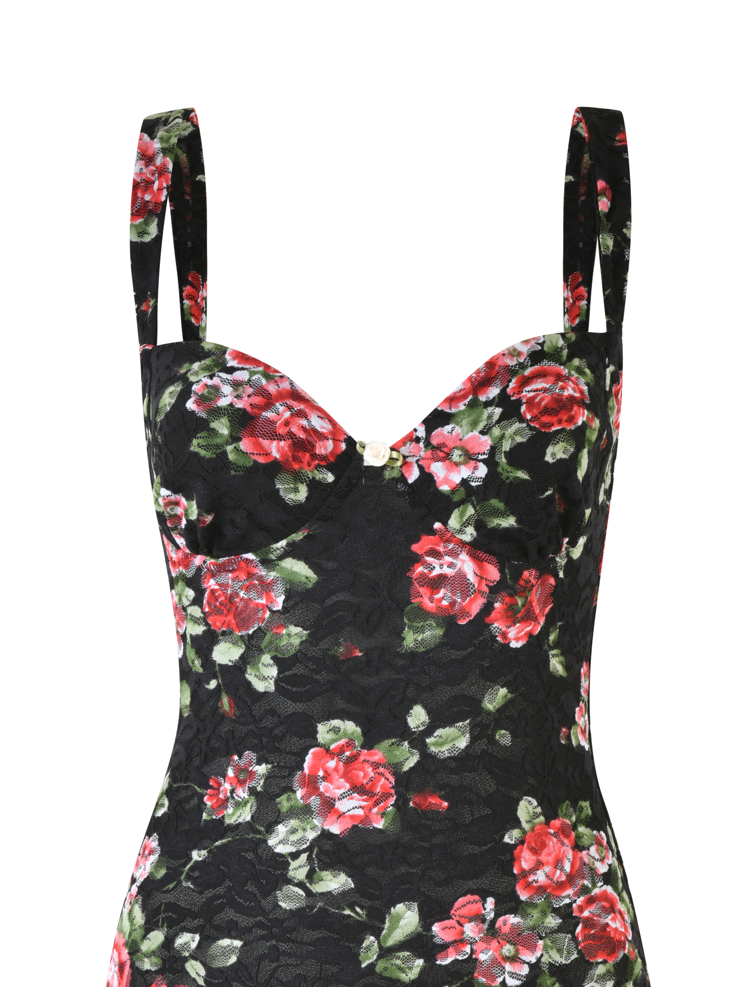 Rose trim at centre front bust