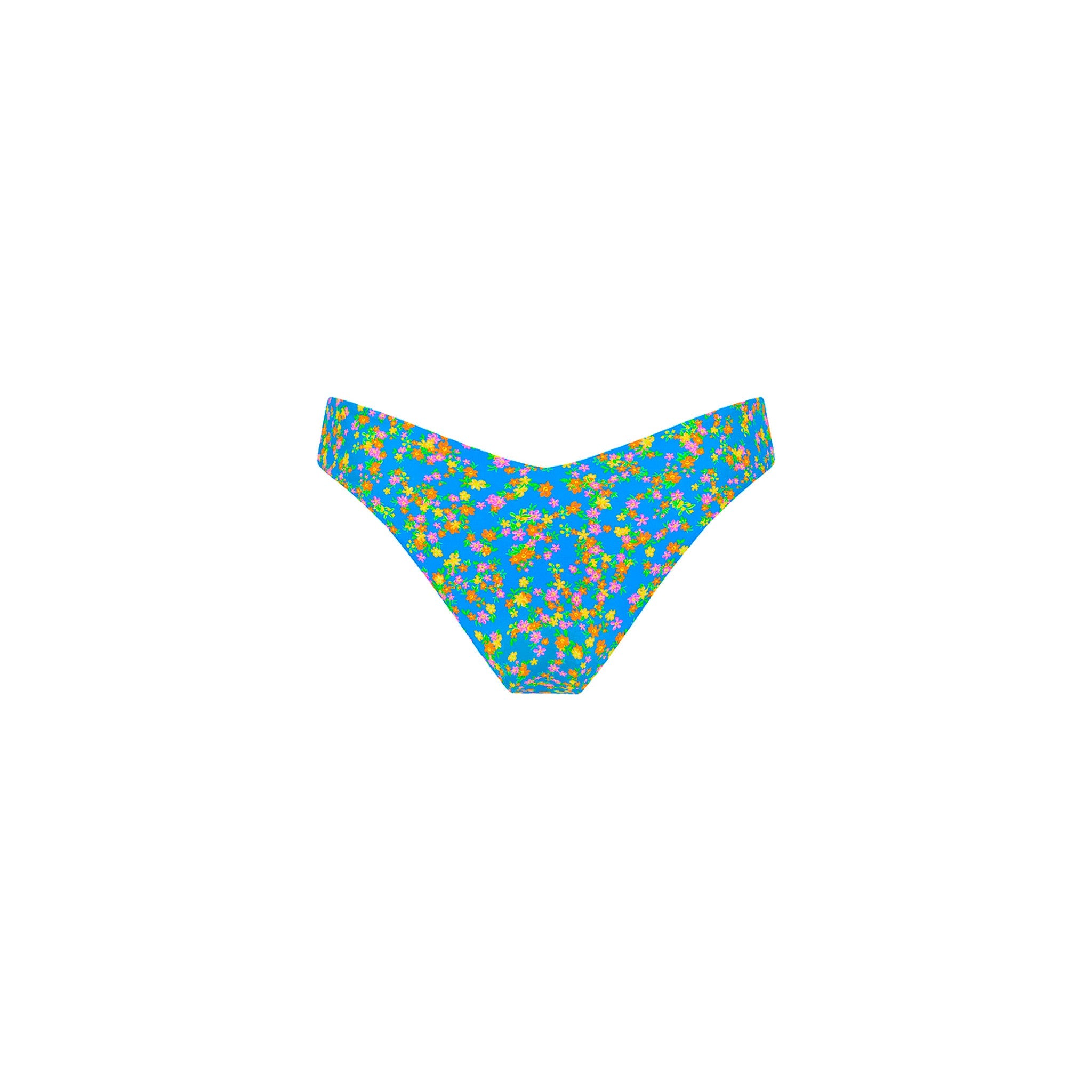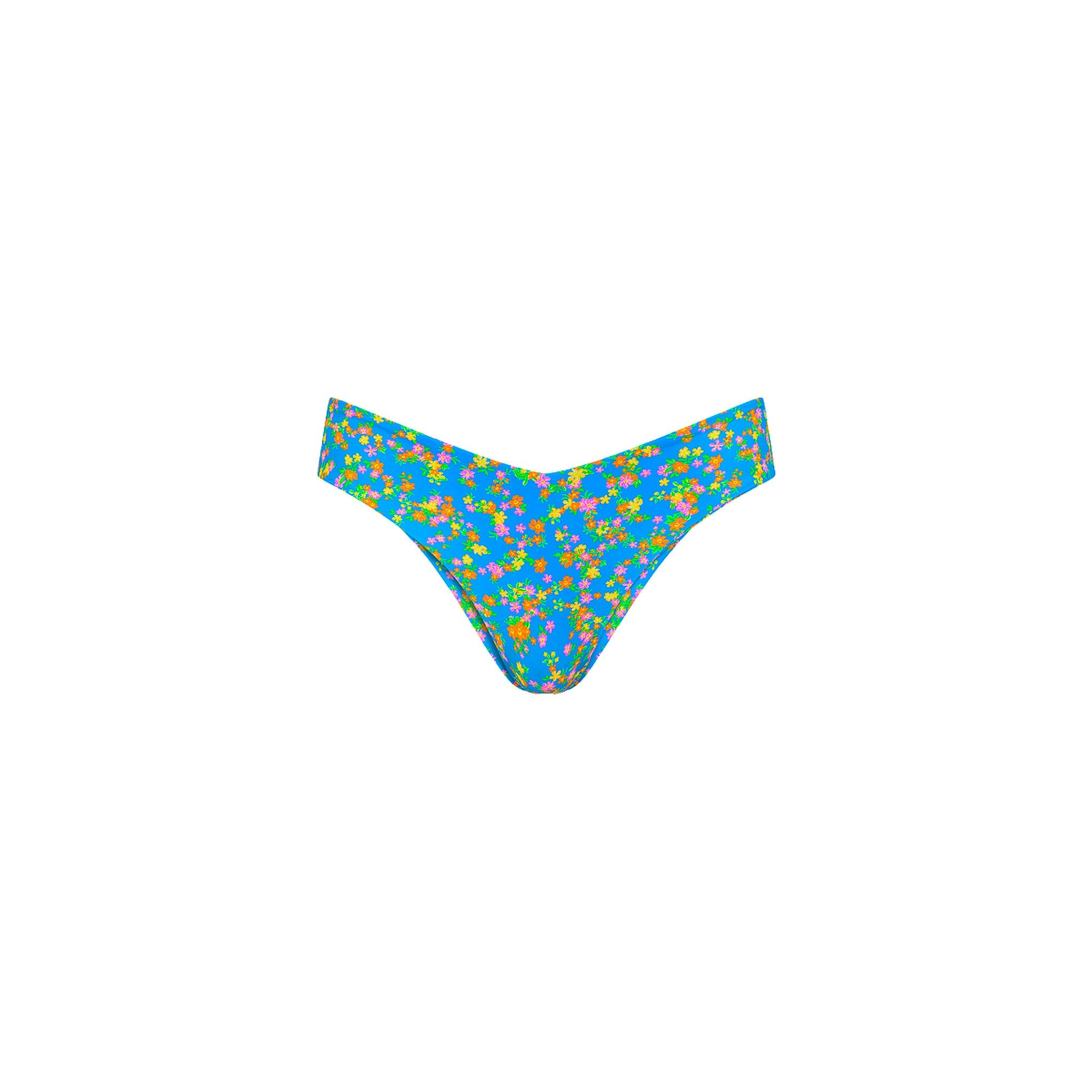 This is a cheeky tanning bottom that offers a bit more front and side fabric coverage for those who don't want a super slim style. Loved for the distinct 'V' shape cut that allows you to raise higher on the hips - creating the illusion of longer legs!