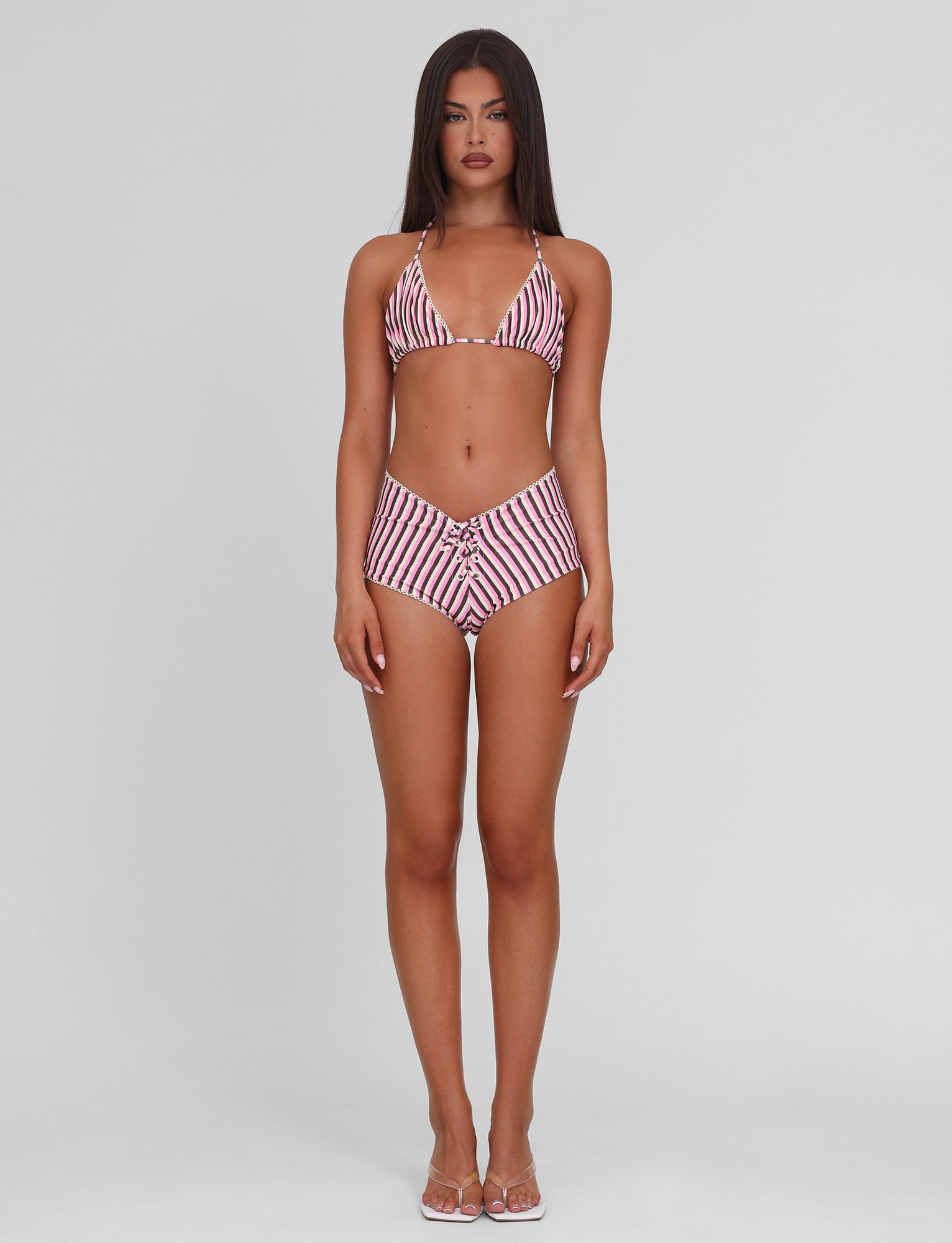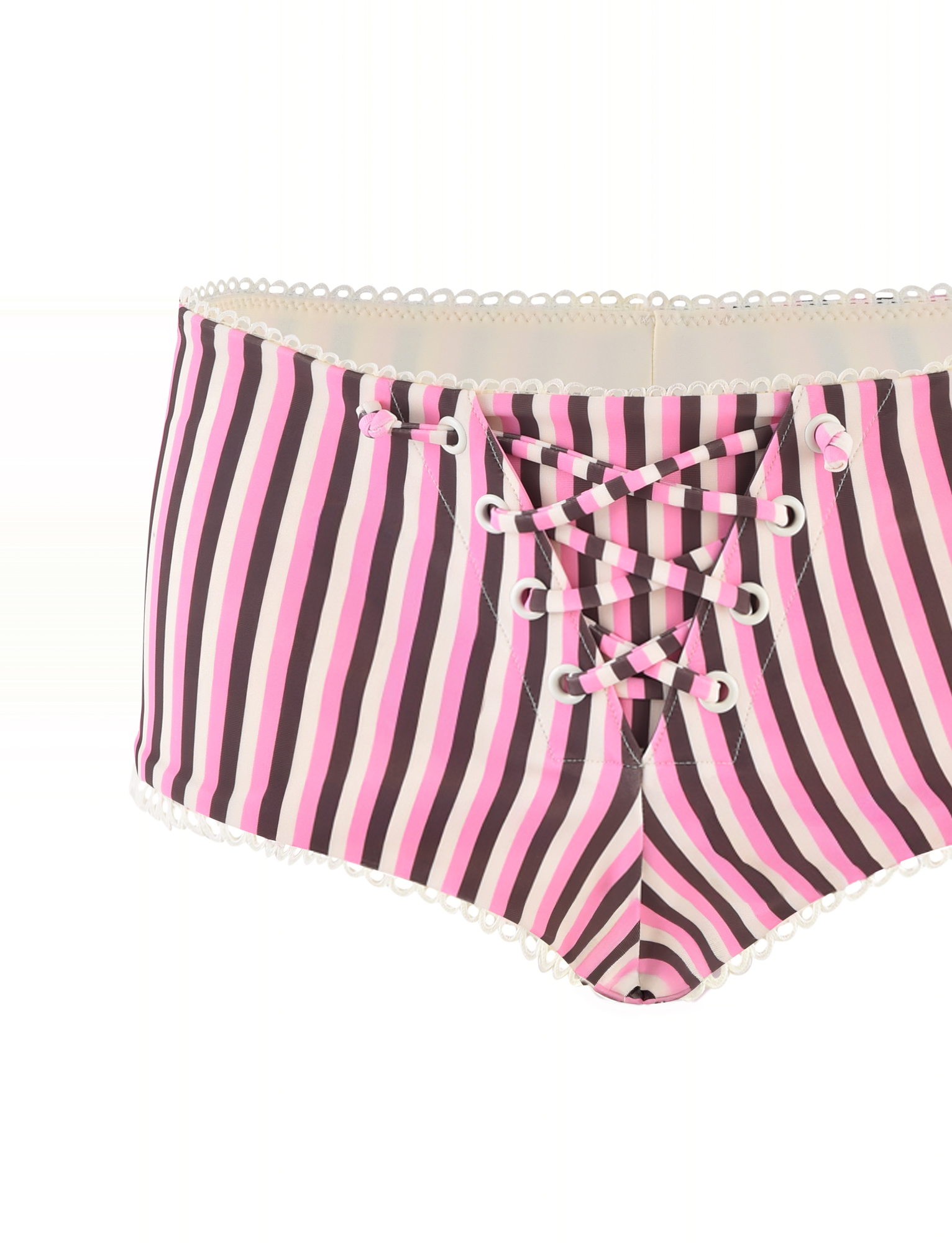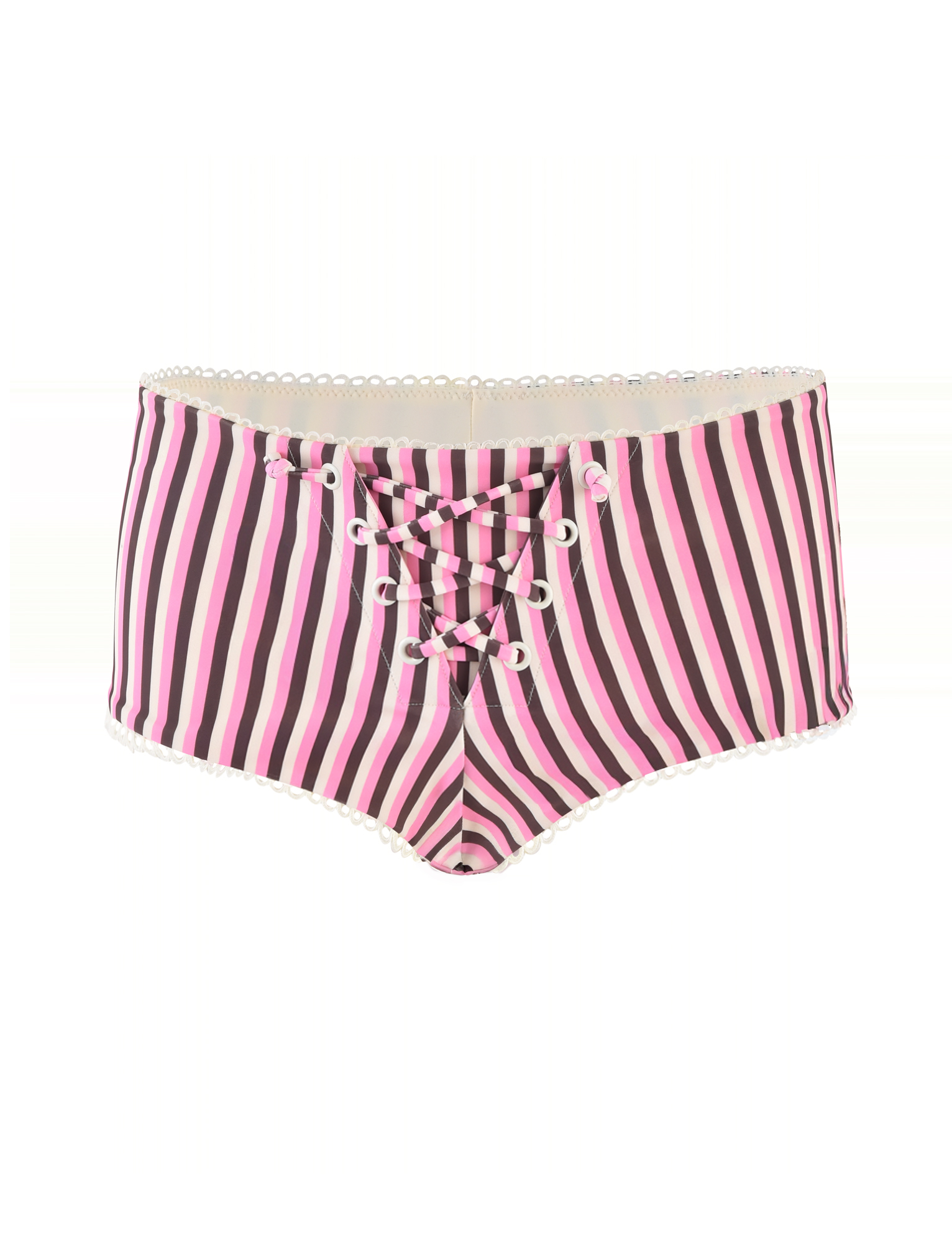 Super mini swim bikini shorts in pink and brown stripe