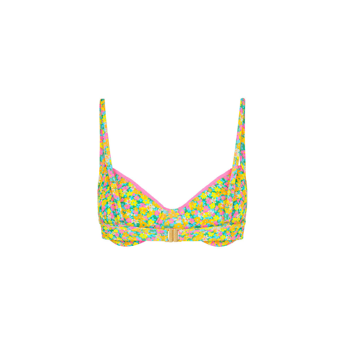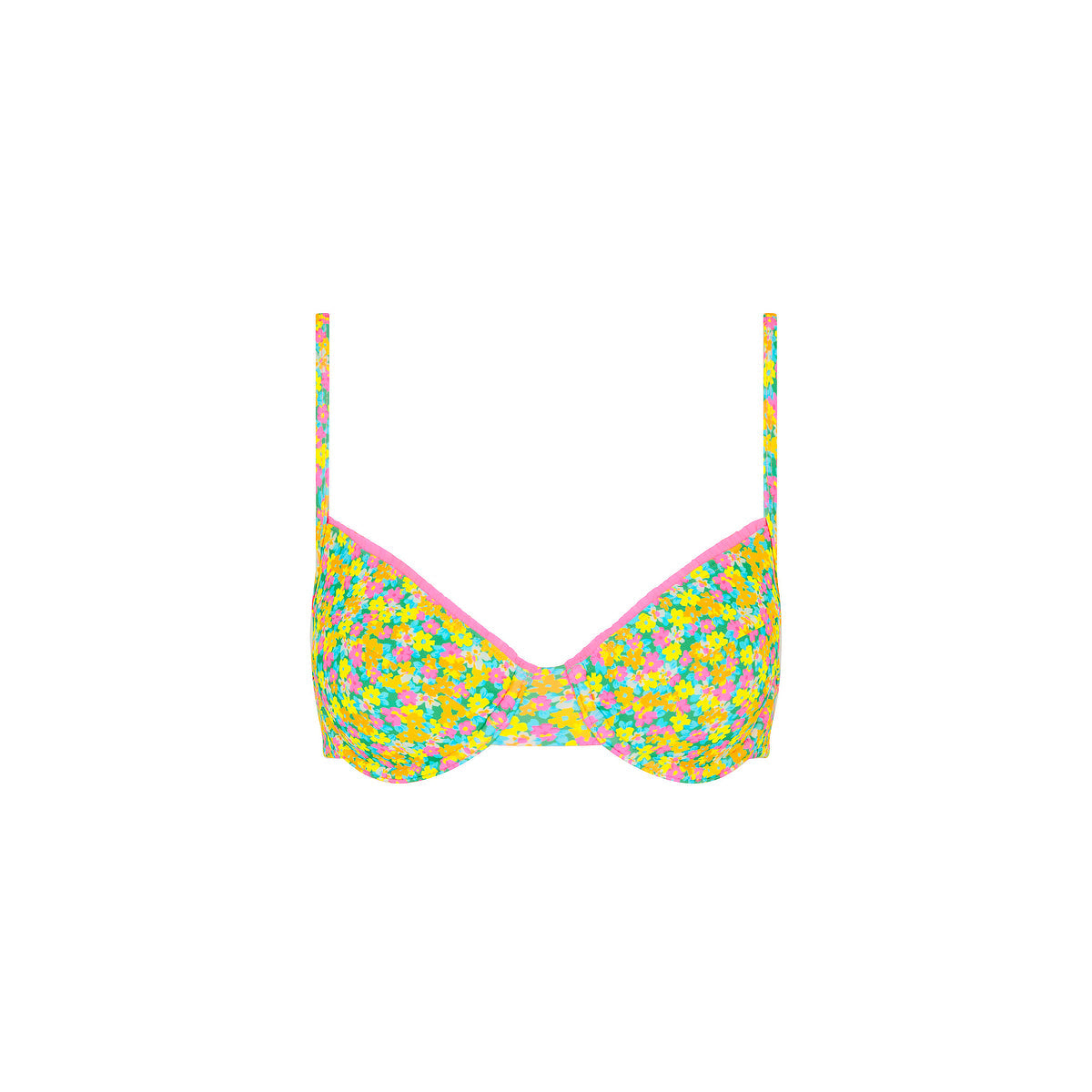 This underwire bikini top is a chic tanning essential, offering greater bust support with delicate organza trim detailing for a feminine touch. Designed with panelled cups for shaping, this style is best suited to B-C cup sizes and features adjustable thin shoulder straps.