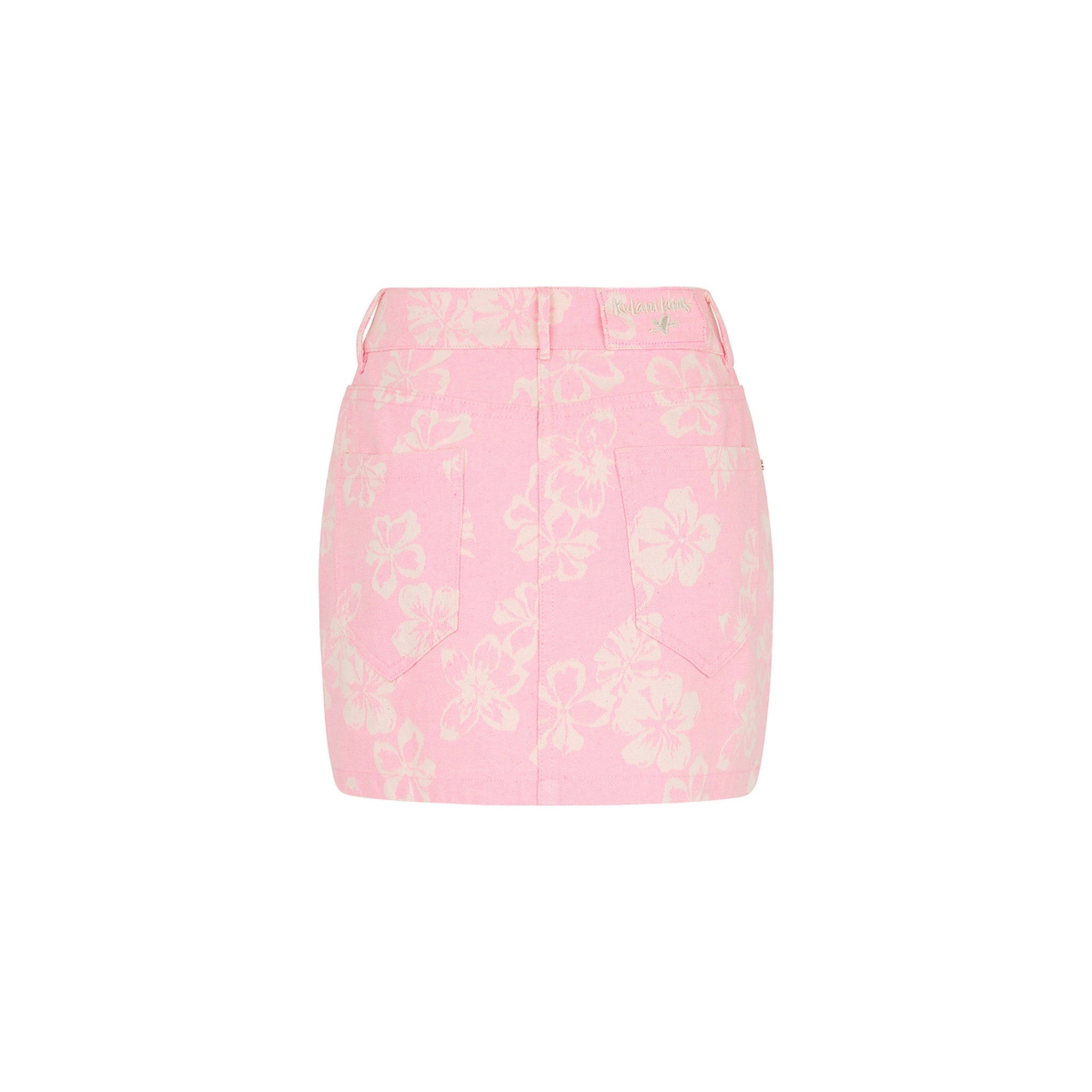 Denim + Kulani = a match made in heaven! Take on your sunshine-chasing adventures in this light-wash denim mini skirt, crafted with our exclusive jacquard hibiscus motif. A must-have from our latest denim collection, this piece pairs effortlessly with your favorite swimwear or casual tees for an effortlessly stylish look.