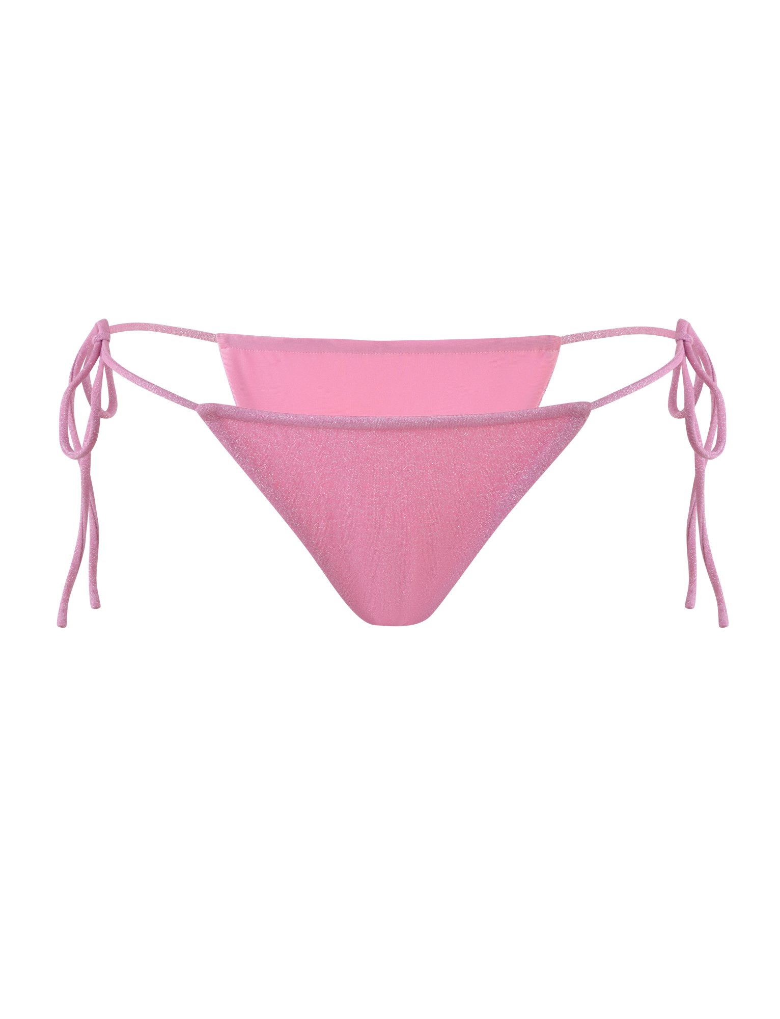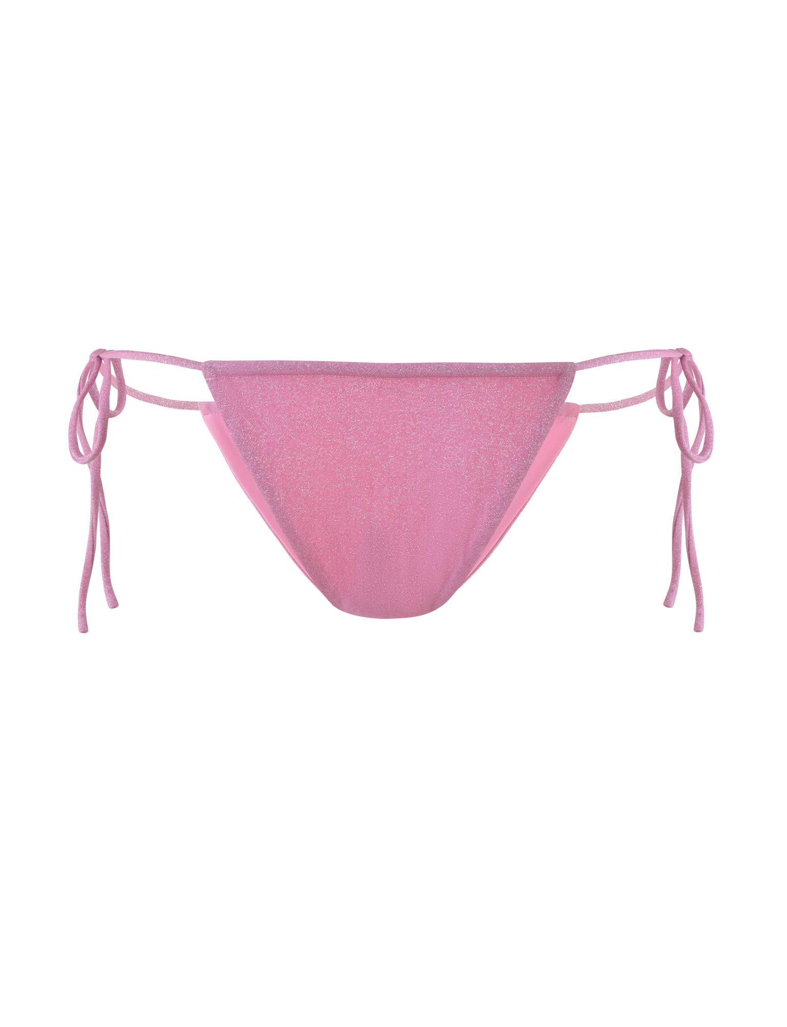 Baby pink shimmer bikini bottom in a sparkle lurex fabrication