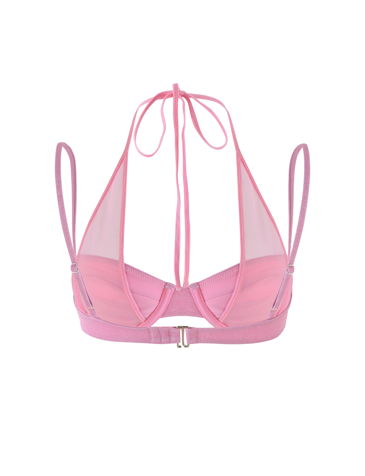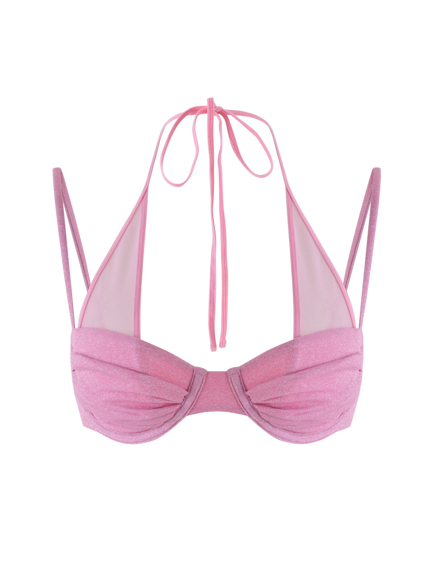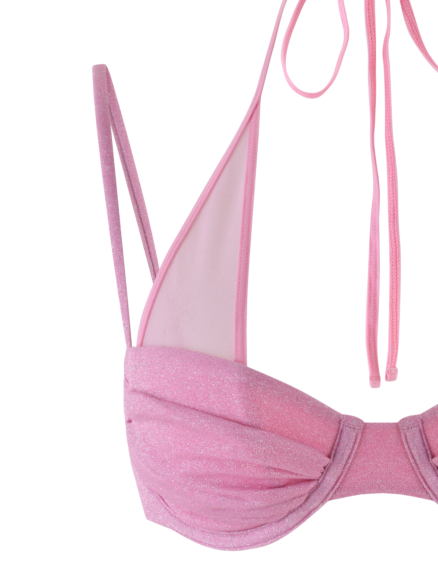 Baby pink layered bikini top in a sparkle lurex fabrication