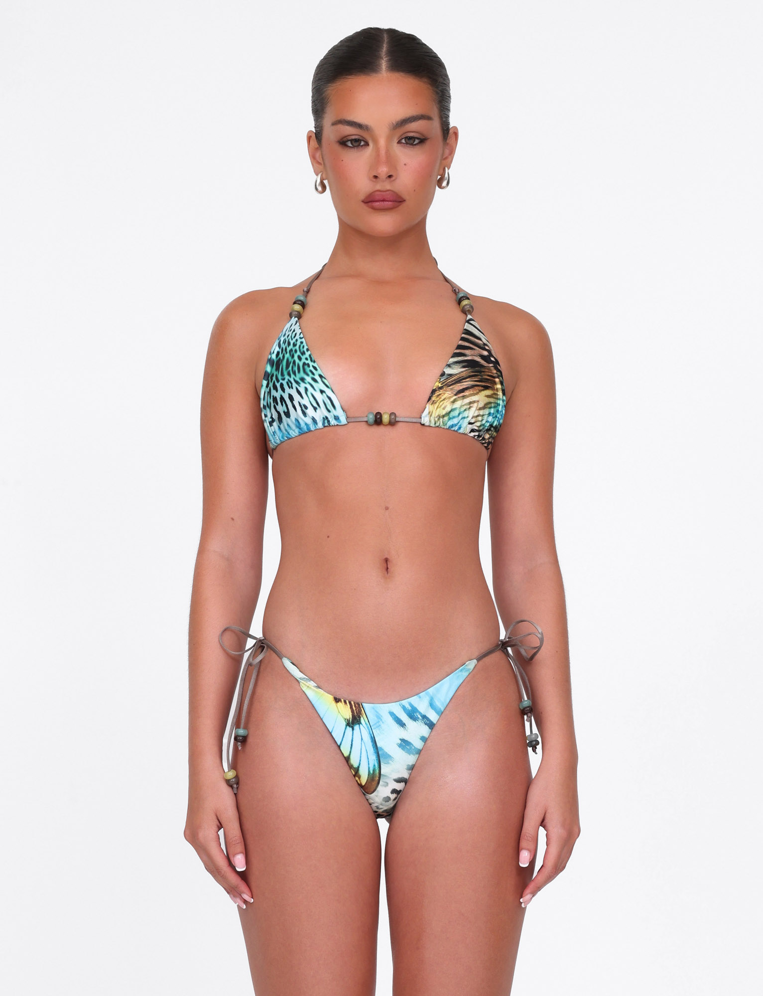 Best-selling Finlea Bikini Top in a new blue butterfly and animal print