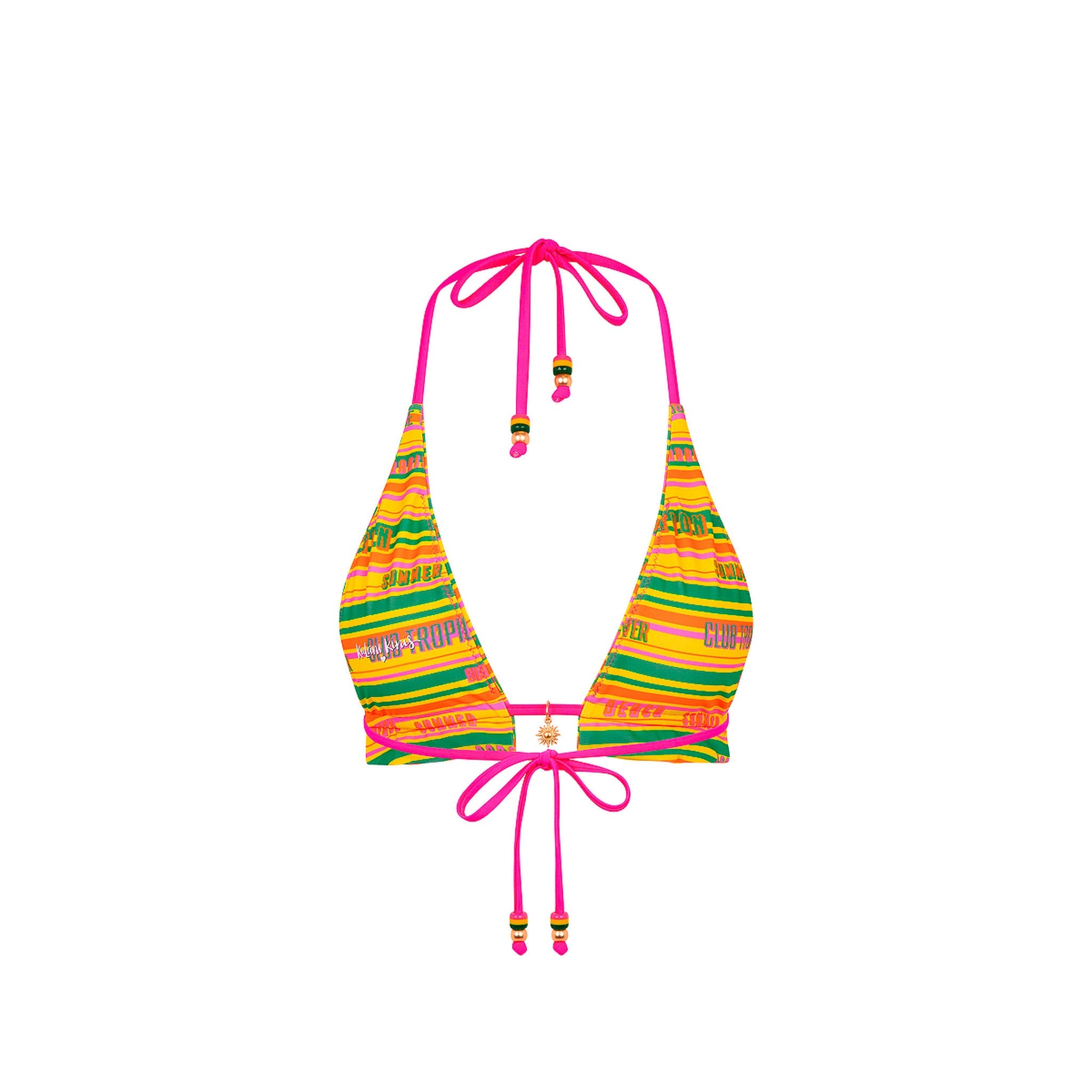 This halter bikini top is a timeless triangle style with a flattering, adjustable underbust frill ruched detailing. Perfect for those who love a secure yet minimal fit, it's a versatile staple for any occasion—simple, classic, and effortlessly chic!