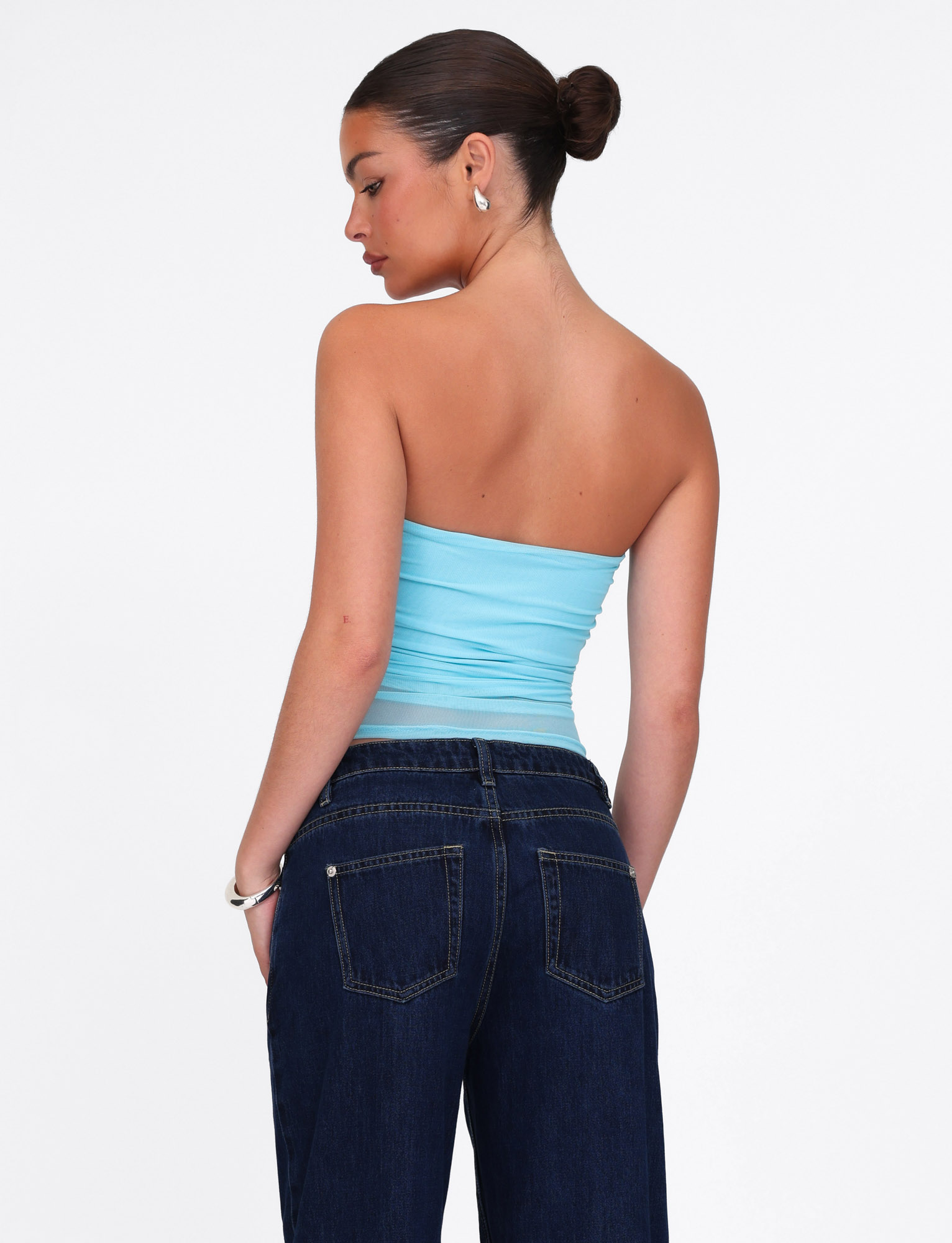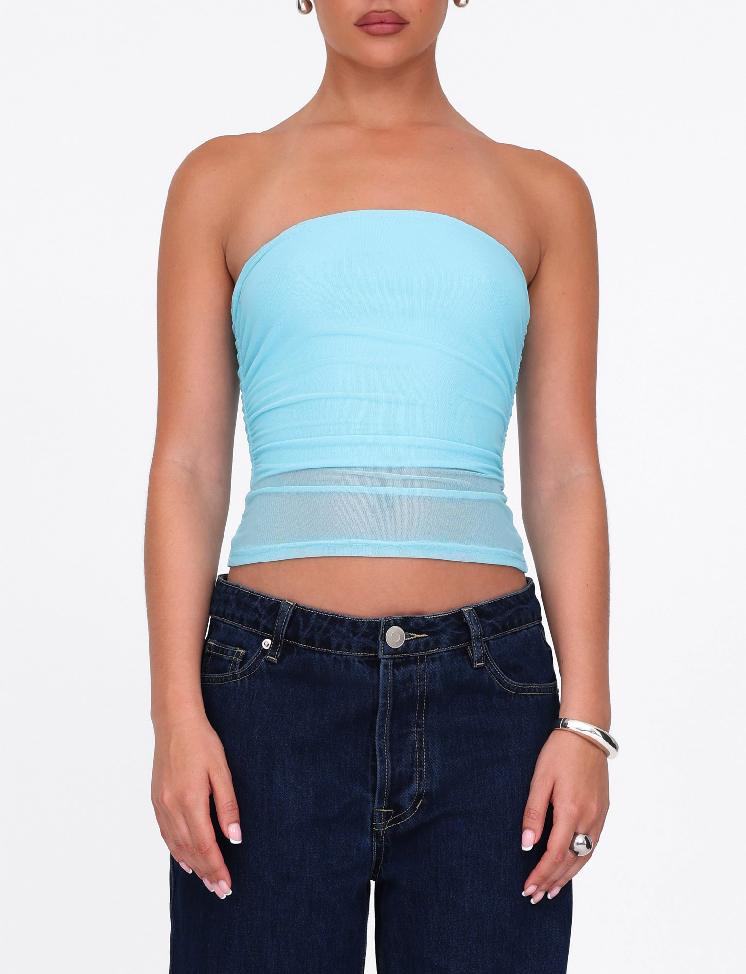 Strapless top in soft mesh fabrication
