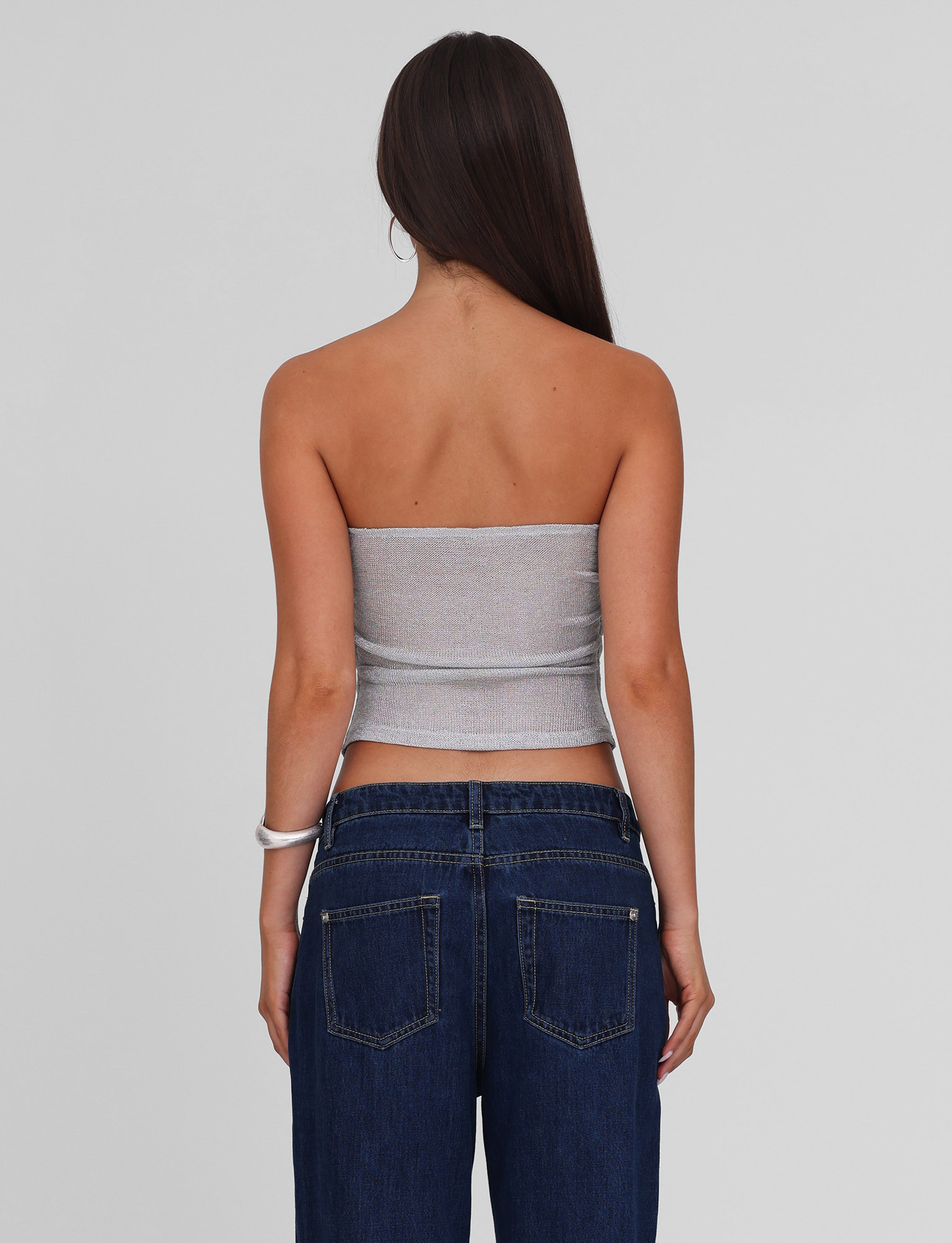 Silver strapless top in sparkle jersey