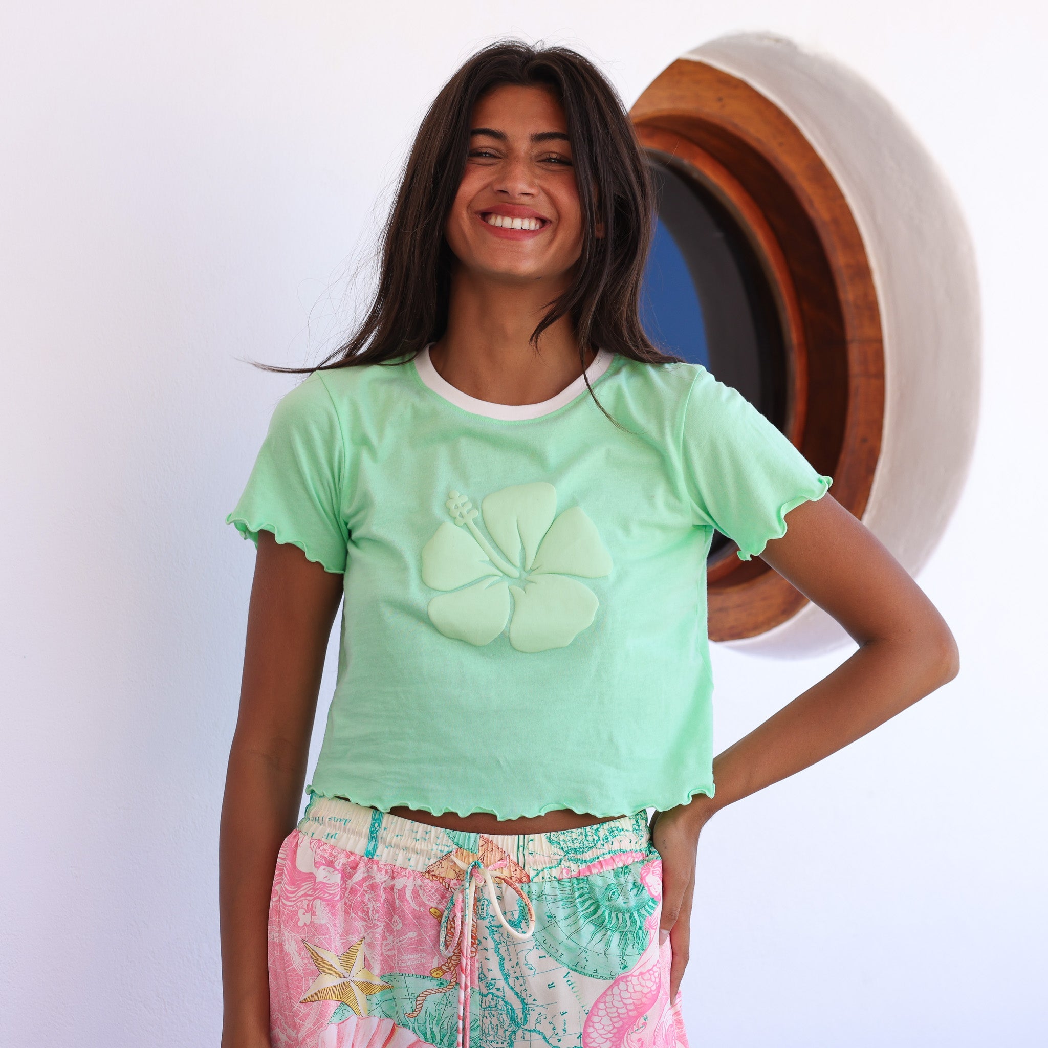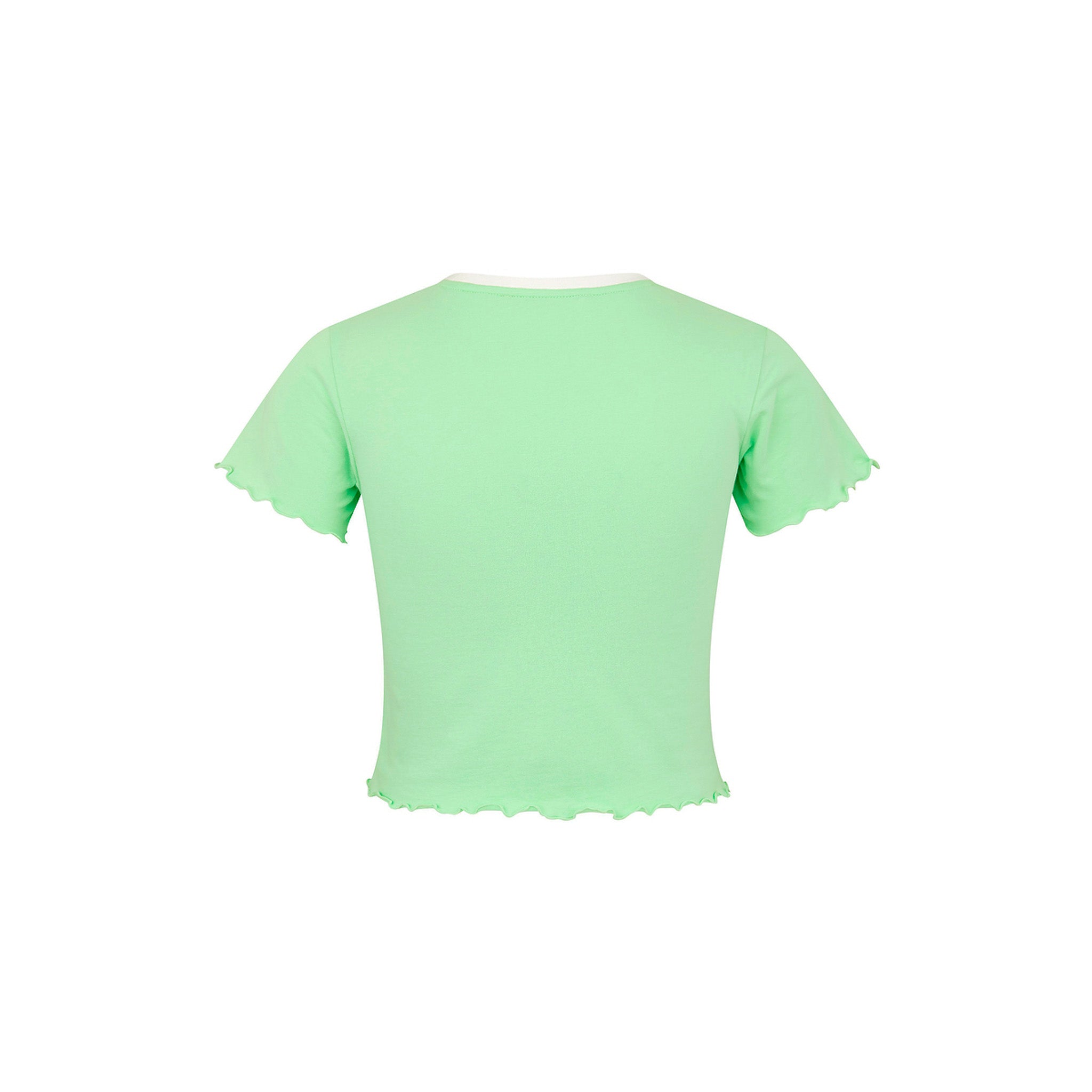 Cute, cropped, and effortlessly cool - achieve casual chic with the Lettuce Cropped Mini Tee. Featuring a soft cotton fabric, classic crew neckline, and delicate lettuce-edge hem for that perfect touch of flirty detail. Made to pair with anything high-waisted.