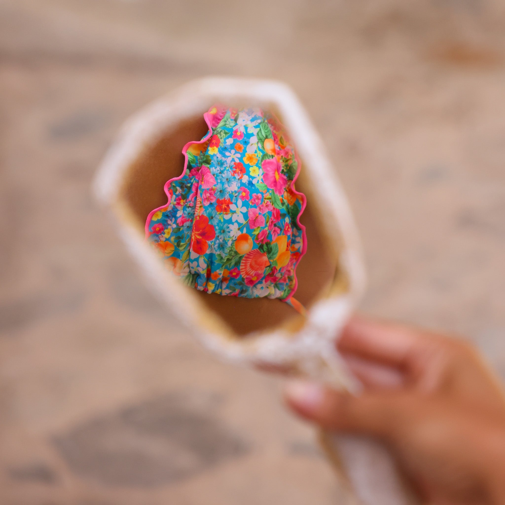A playful and fun twist on our original 'Bralette' bikini top, that features a beautiful 'lettuce edge' (mermaid tail inspired!) textured finish! This minimal tanning top is perfect for sun soaked beach days and is effortlessly flattering on the body.