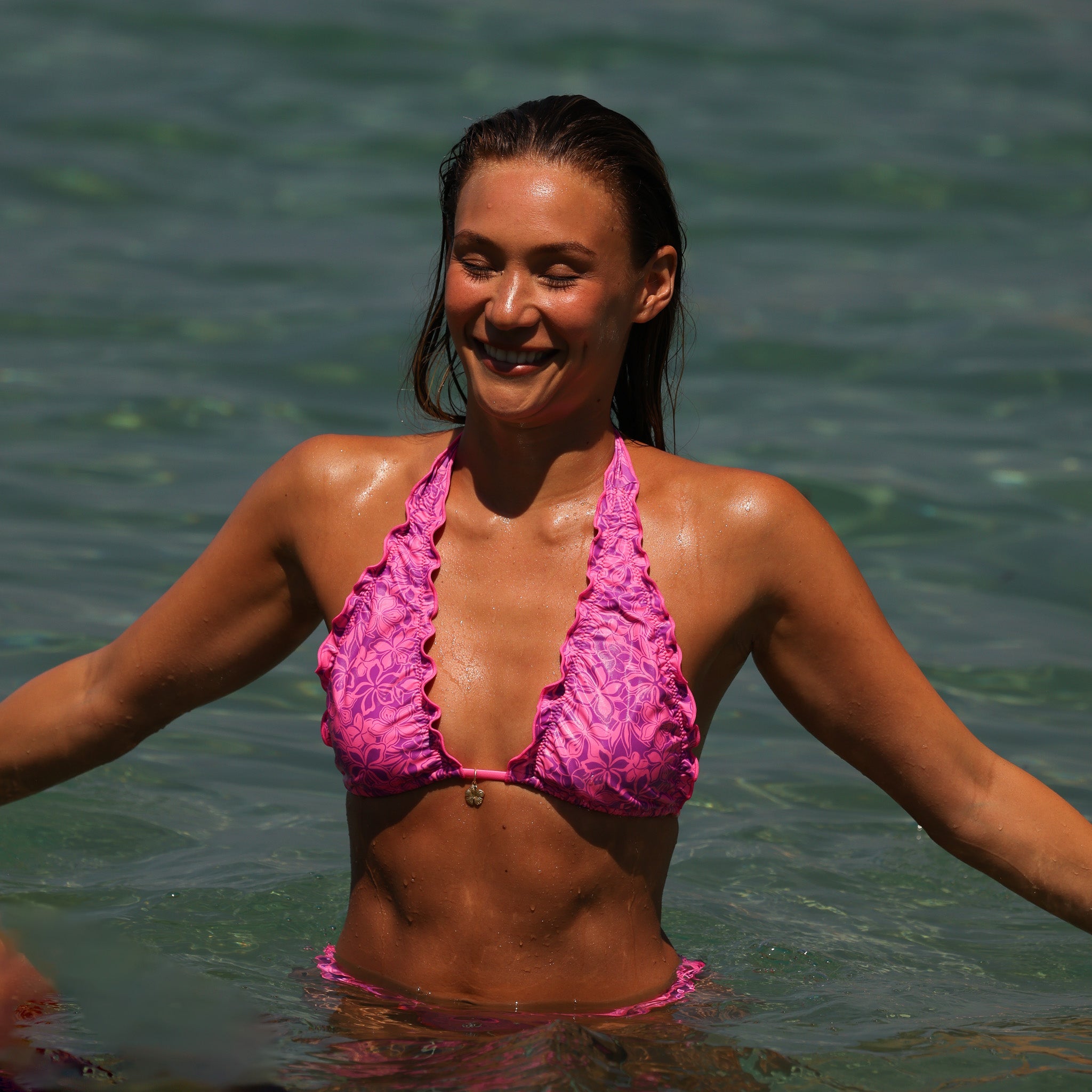 Hot tubs and chlorinated pools with harsh chemicals can affect the color and quality of your swimwear, so itβs best to avoid them if you want to keep your kinis looking vibrant. Be mindful of rough surfaces like pool edges, decking, or rocks to prevent snagging. Limit contact with fake tan, suntan lotions, oils, and harsh chemicals as these can affect the fabric.