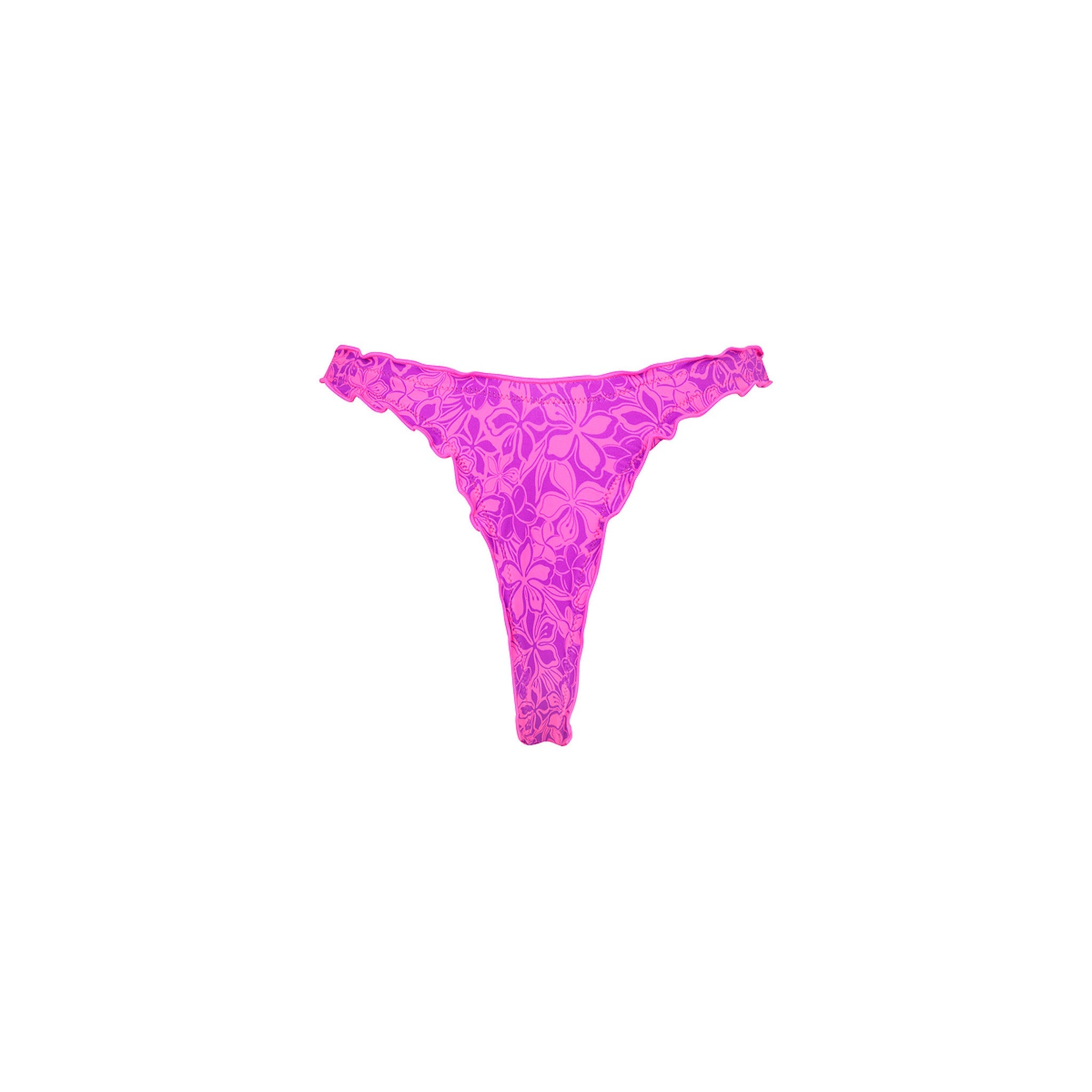 This is a high cut 'g-string' style thong bottom, that incorporates our beautiful new 'lettuce edge' (mermaid tail inspired) textured finish. These bottoms are perfect for sunbathing and have a true brazilian cut and are designed for our ultra cheeky lovers.