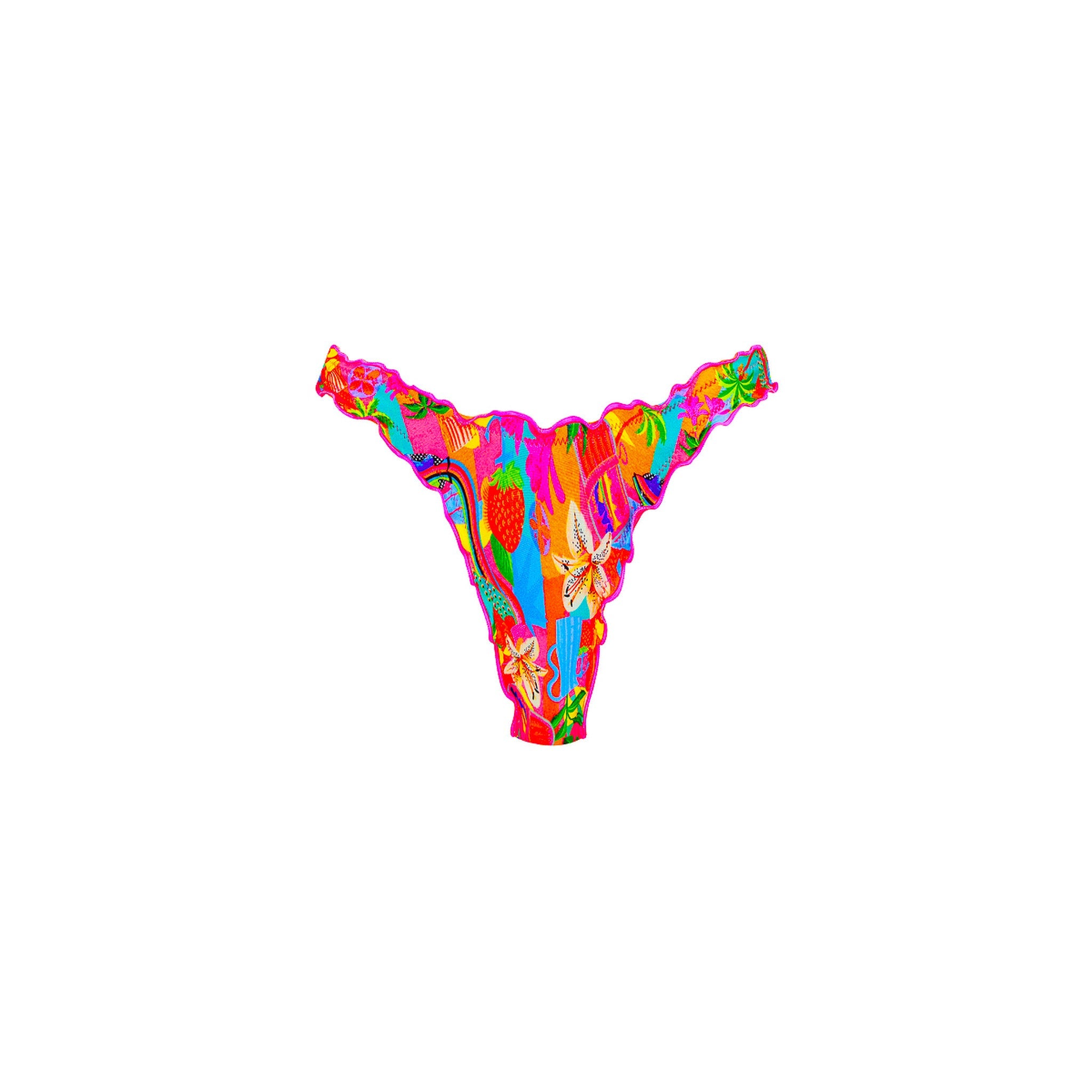 This is a high cut 'g-string' style thong bottom, with our new mermaid finish trim detailing. Perfect for sunbathing and keeping tan lines to a minimum, these bottoms are designed for the bold and confident. The true Brazilian cut and slim front design make them a favorite for those who love to stand out.