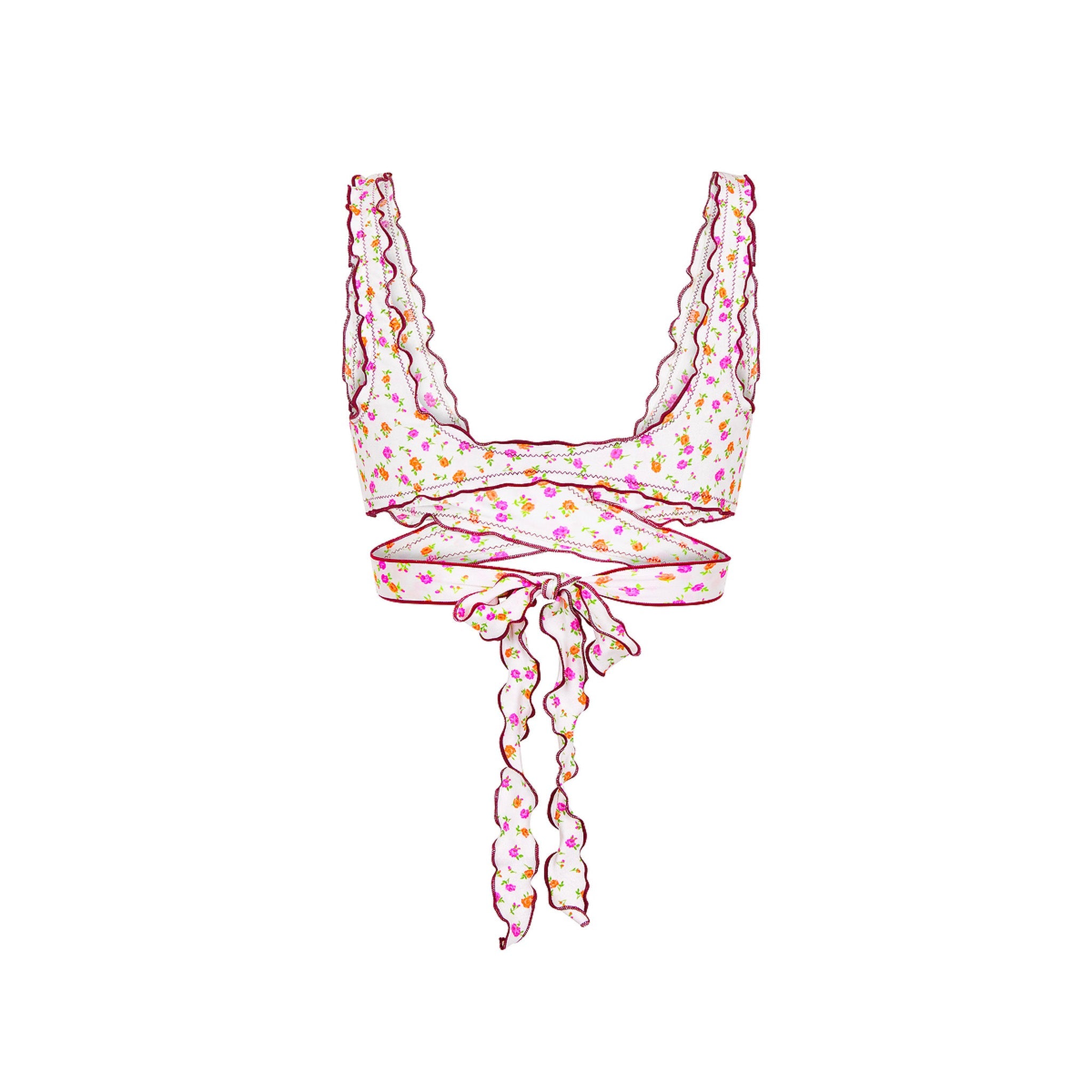 Our Lettuce Edge Wrap Bikini Top is a playful piece designed to make you feel like a beach goddess! Featuring the cutest wraparound details, it beautifully highlights the bust and cinches the waist for a flattering fit.