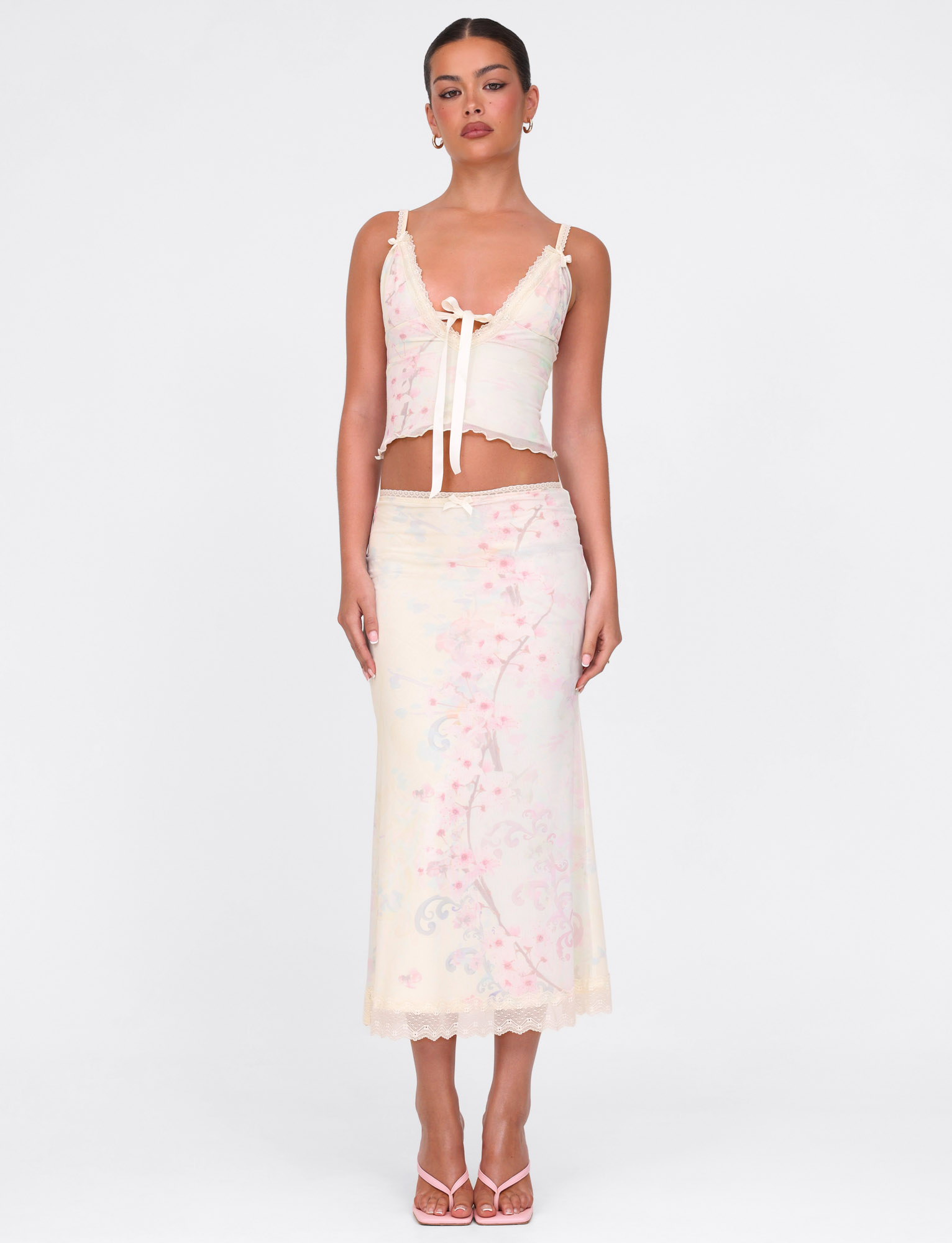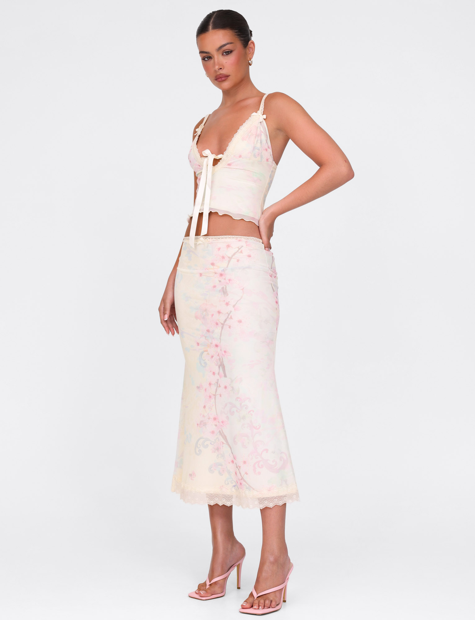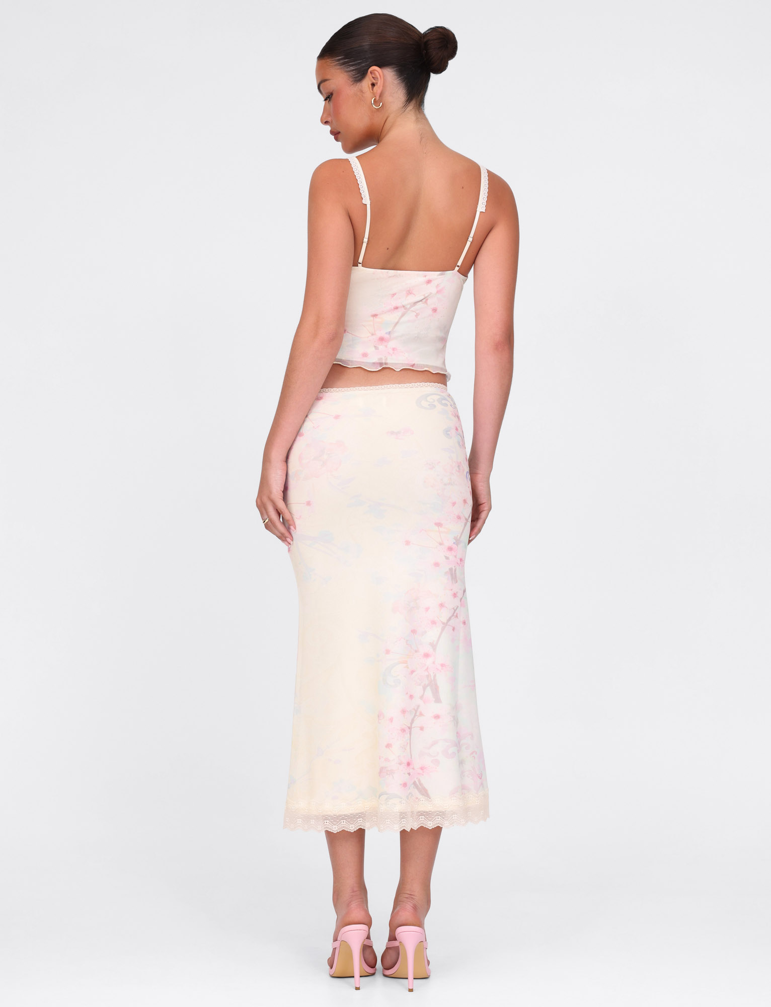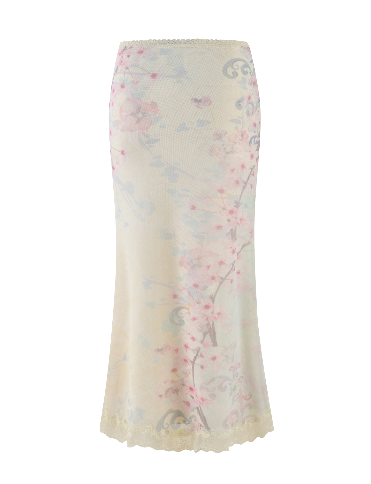 Printed mesh midi skirt