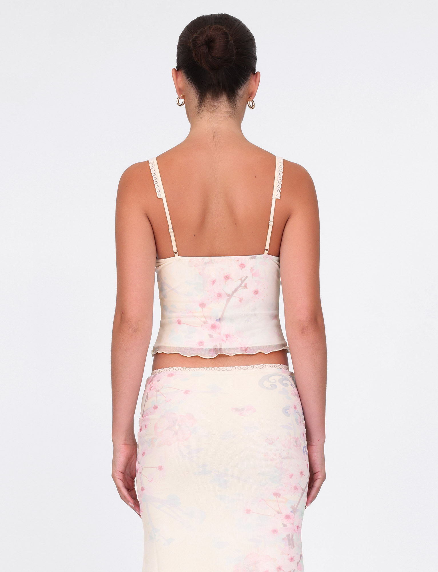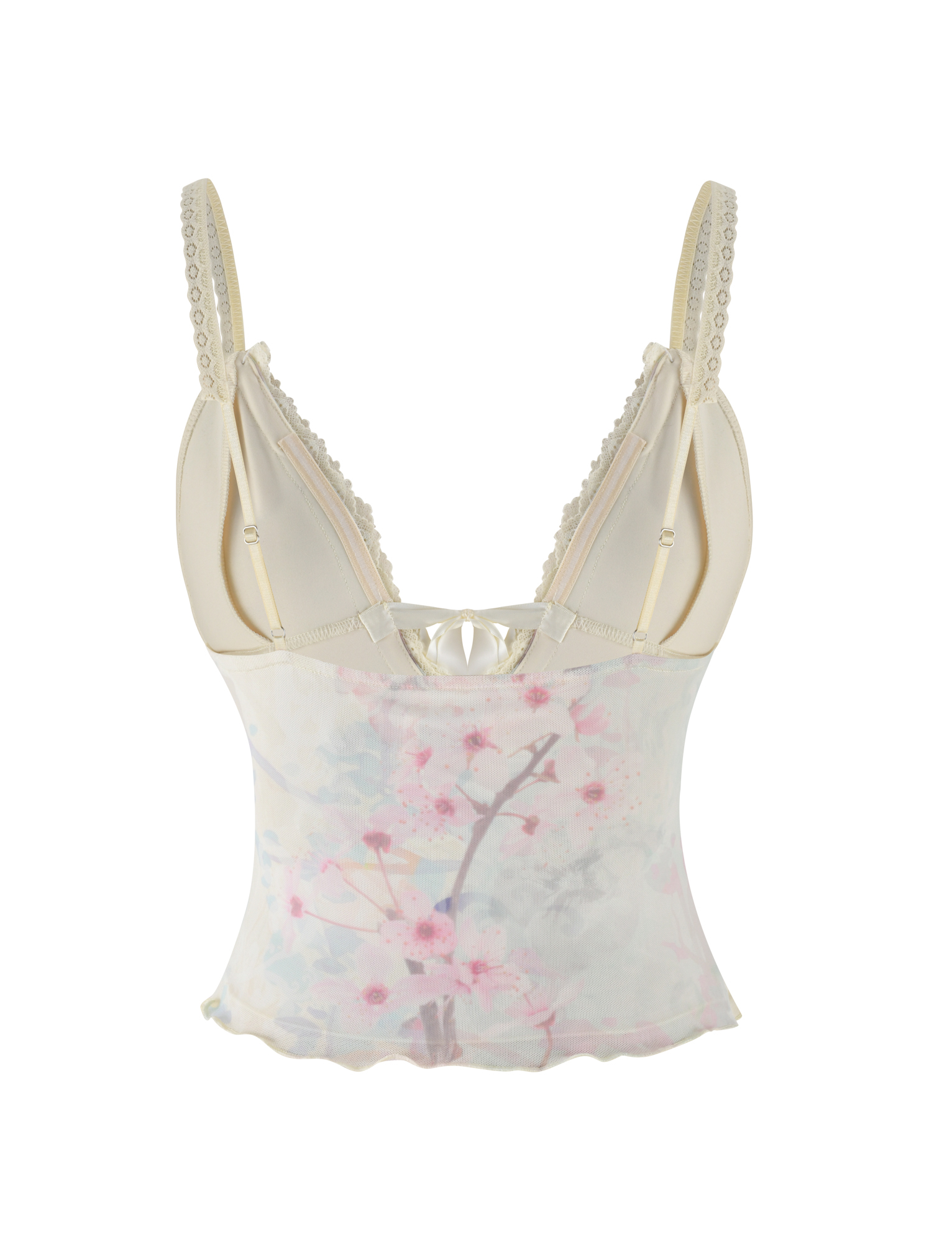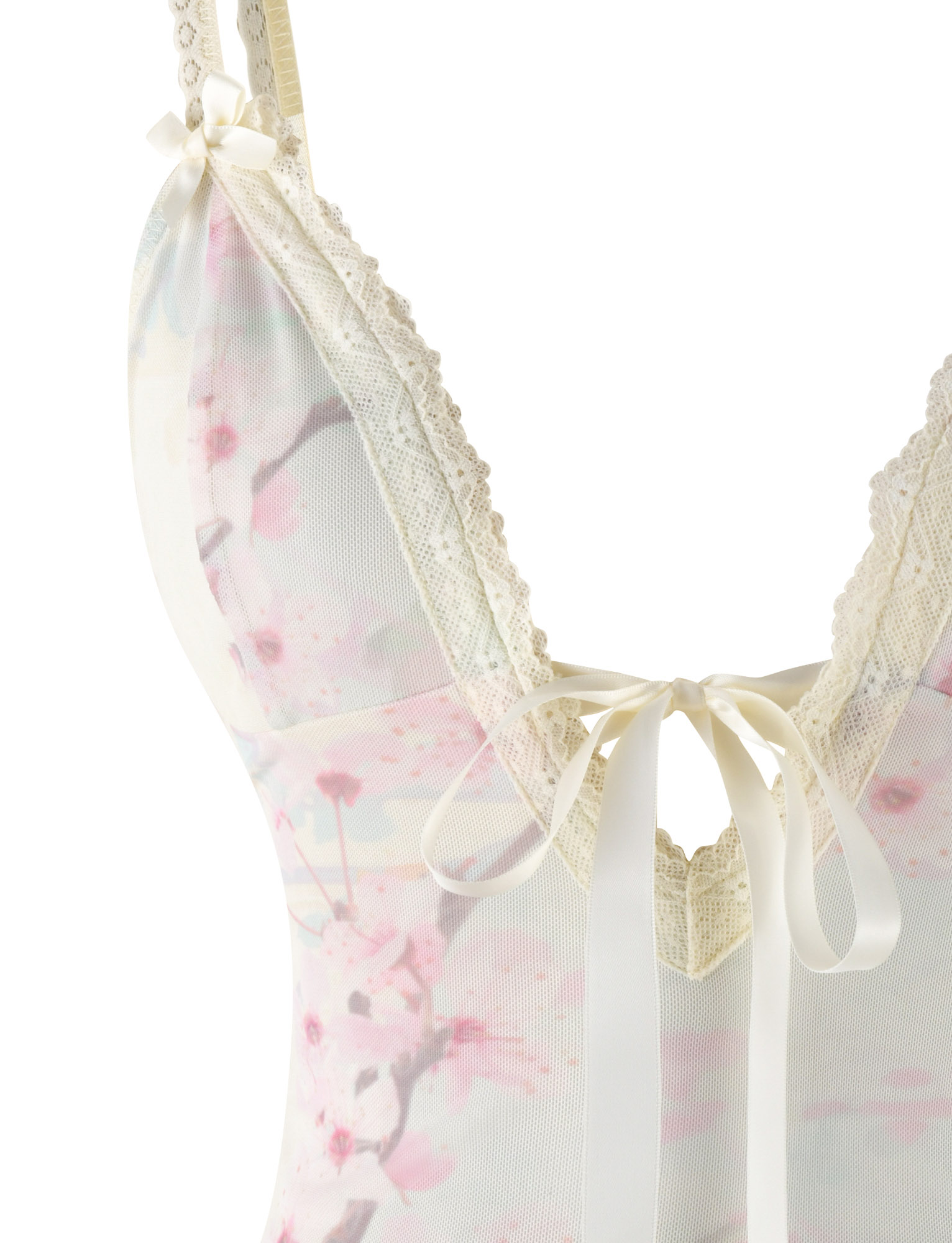 Cutesy singlet top in cherry blossom print with demure centre satin bow