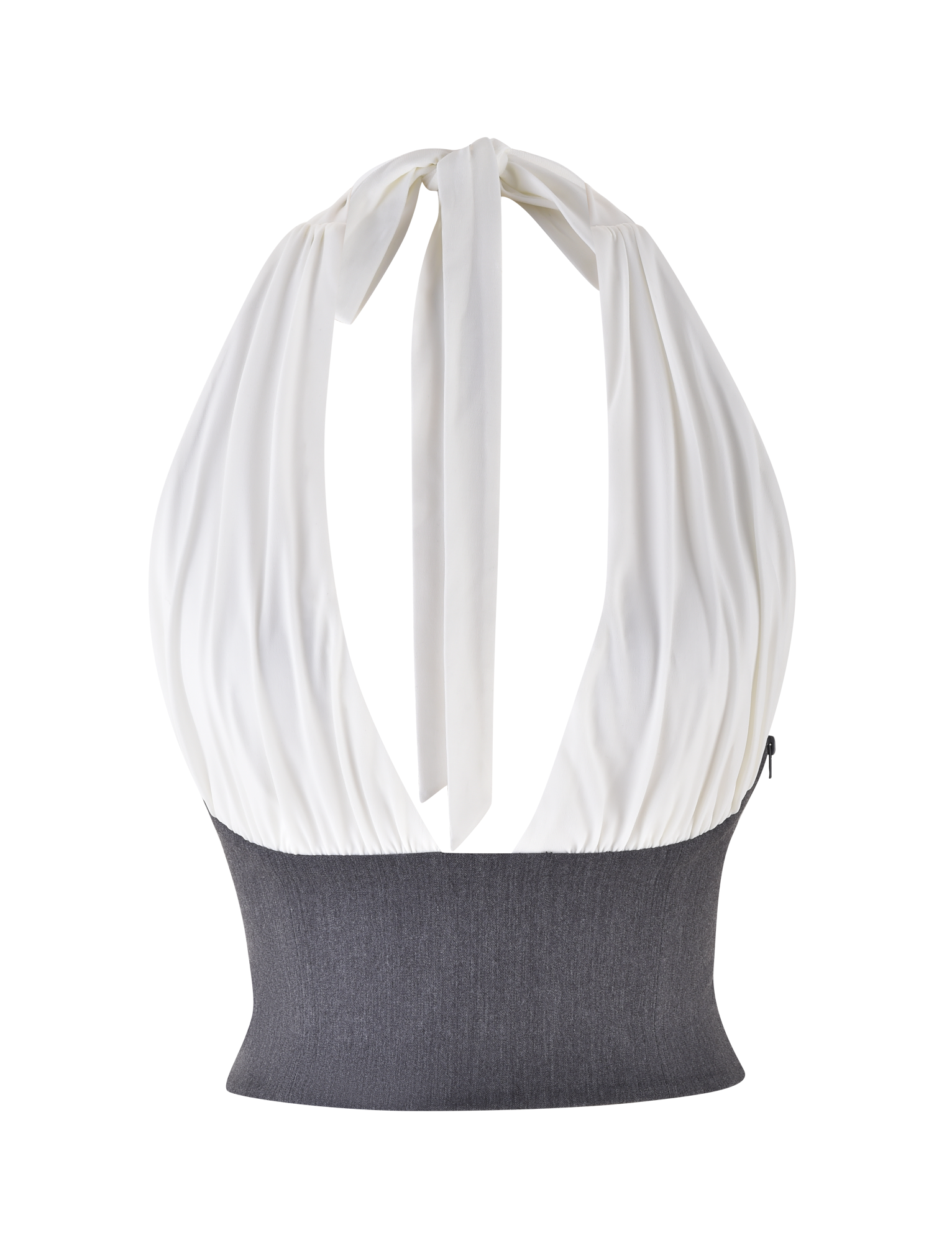 Jersey gathered bust panels with functional halter tie at back of neck