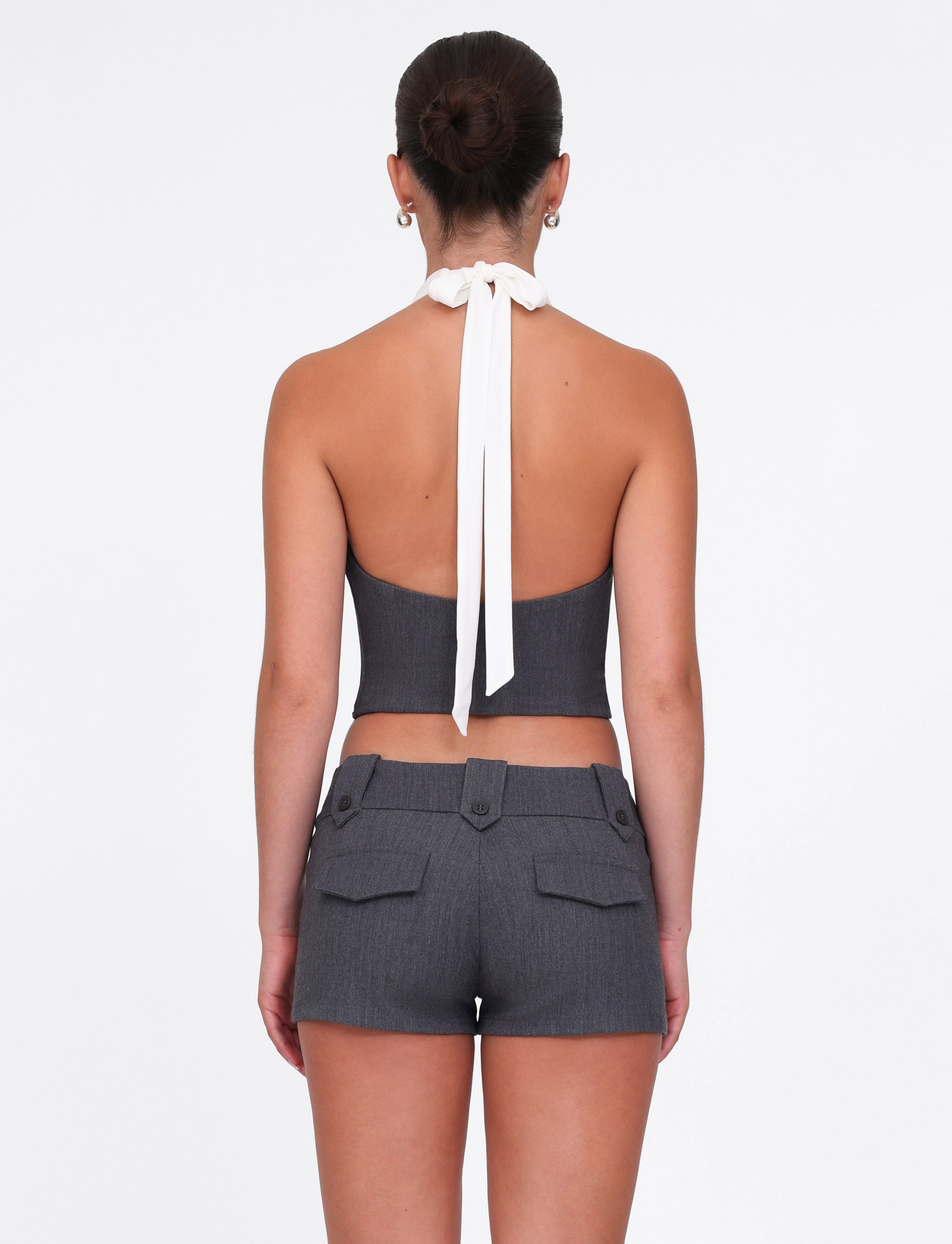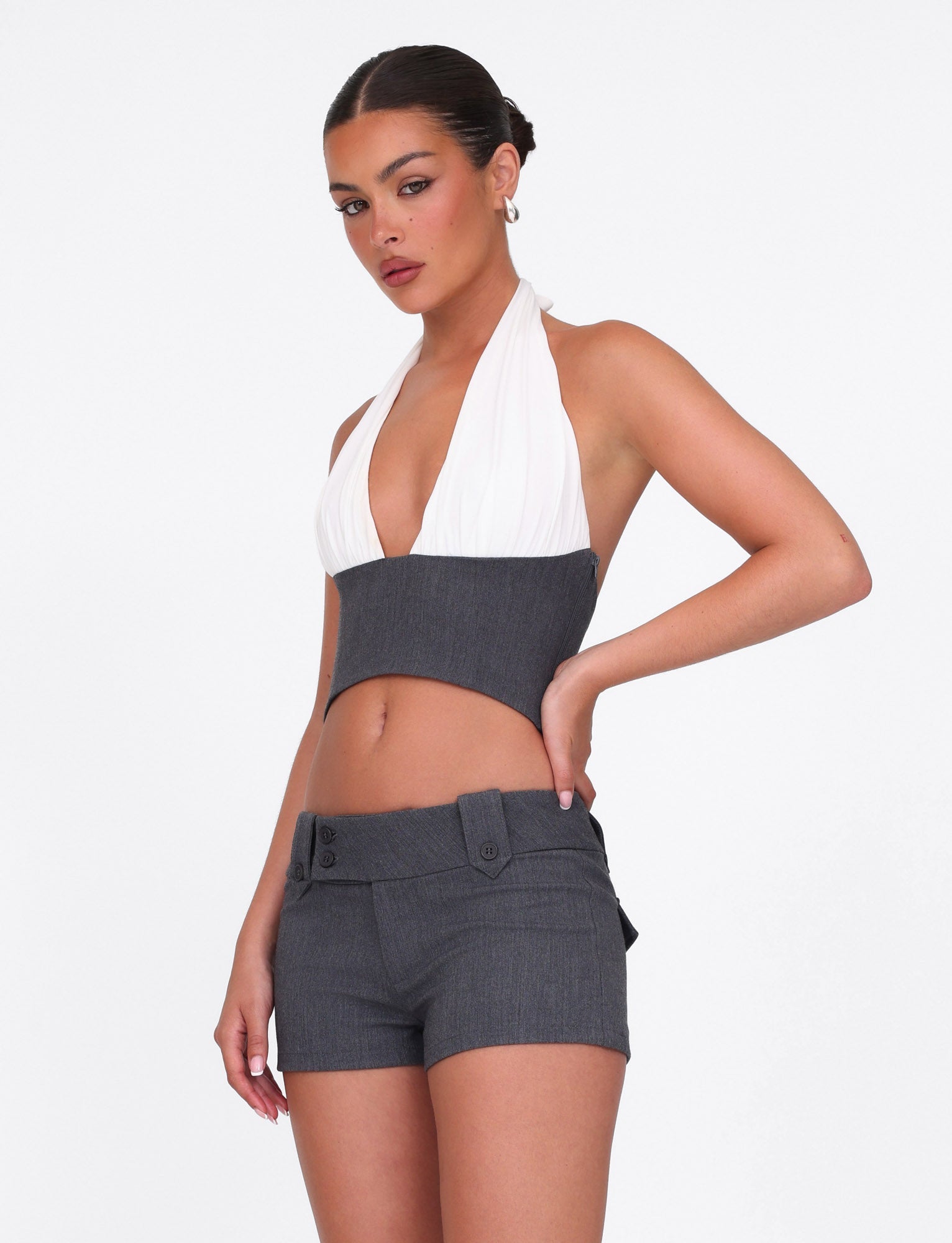 Plunging front neckline cropped halter top
