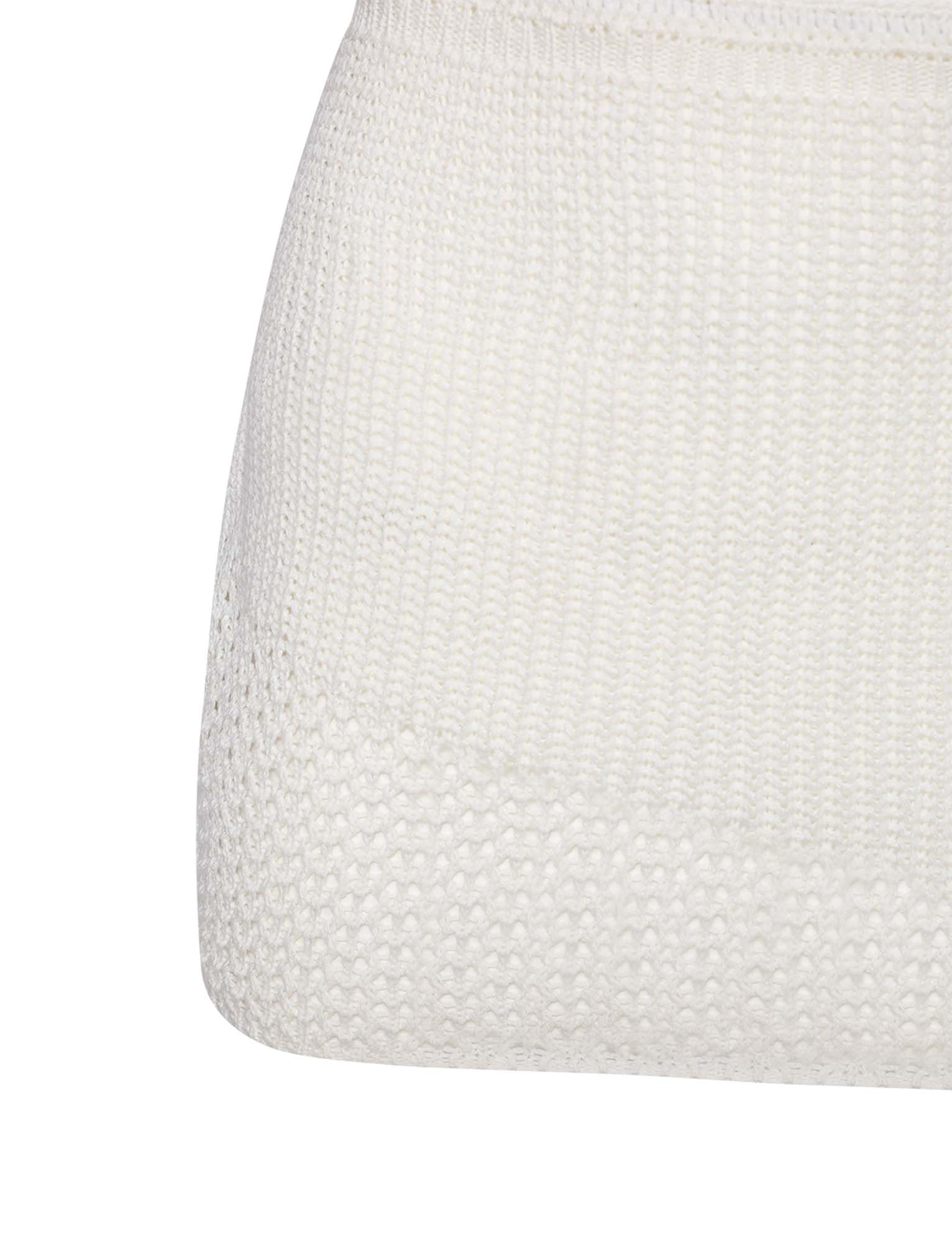 Mini crochet skirt featuring two panels of crochet contrast at the centre front