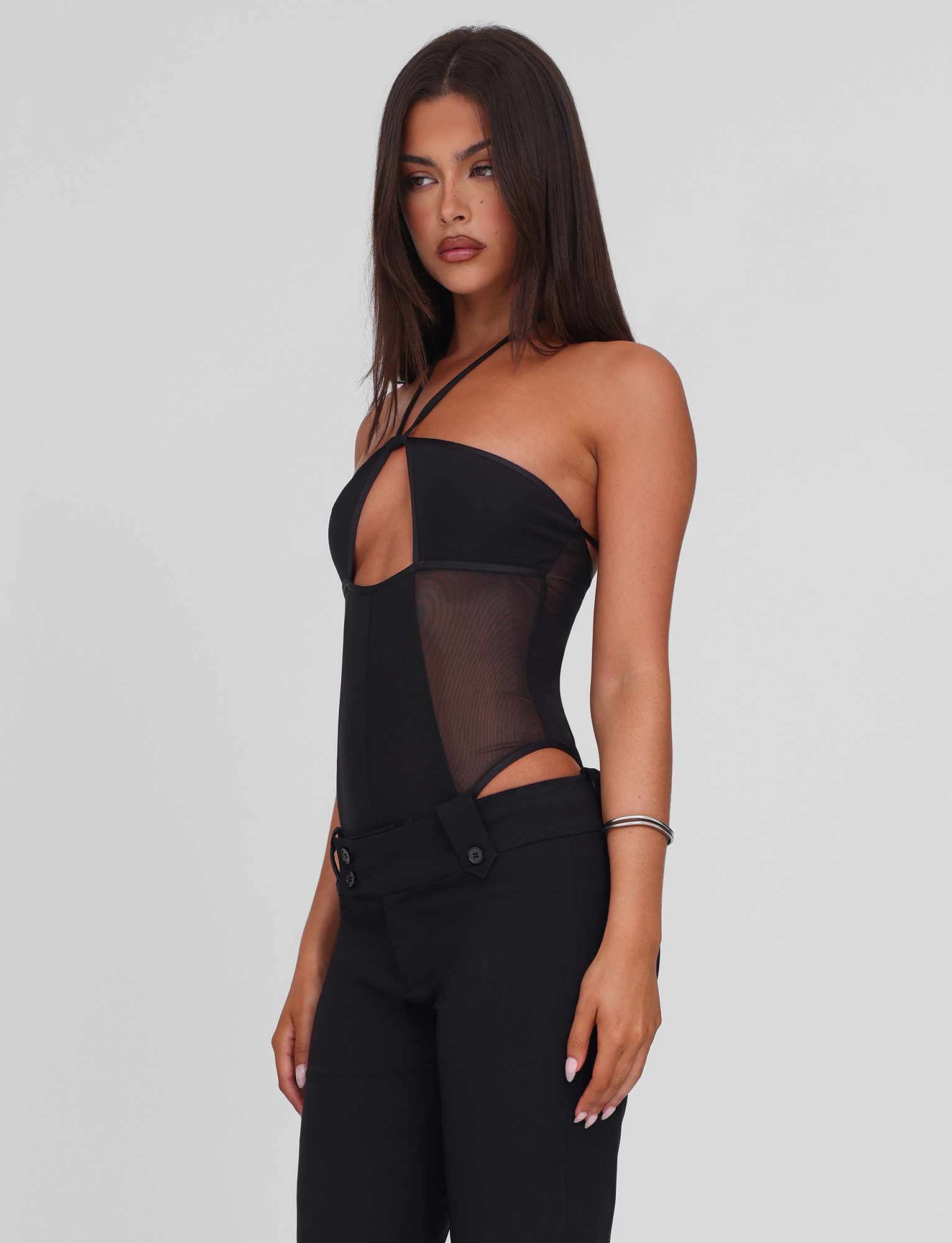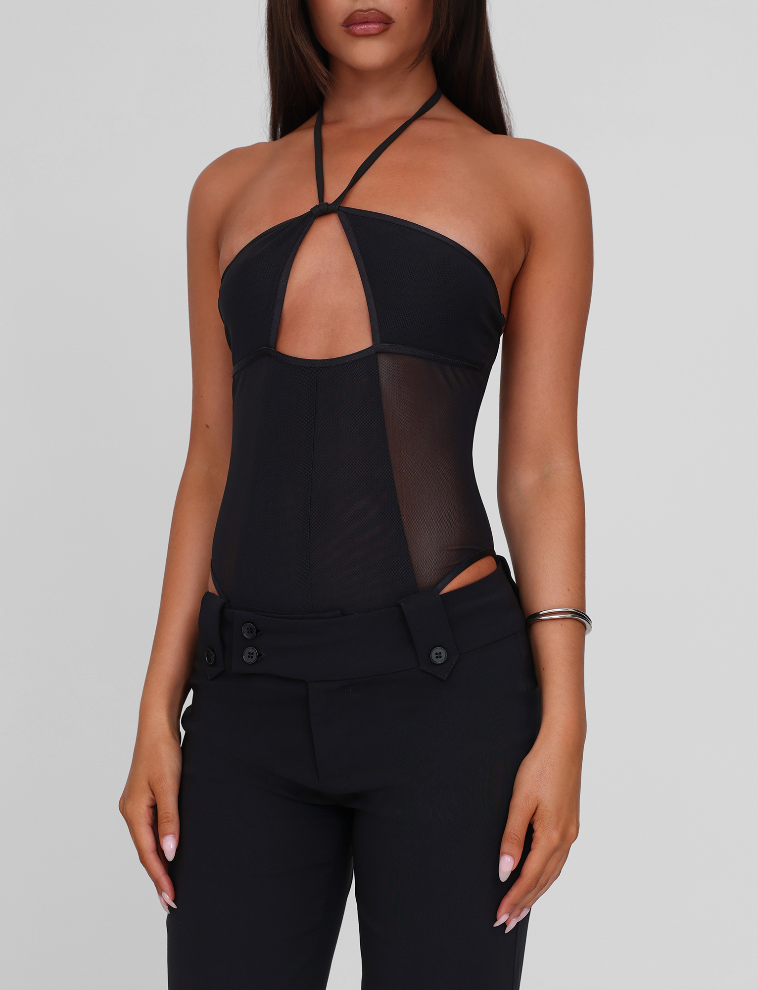 Halter neck mesh bodysuit