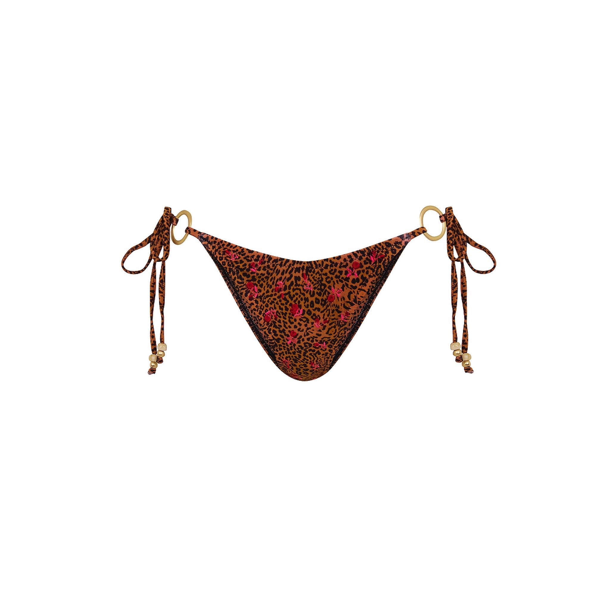 Make a statement with our new Ring Cheeky Tie Bikini Bottom, designed for a flirty and flattering look. Featuring O-ring side details and adjustable tie sides, these bottoms offer a dipped waist and high-cut that accentuate your legs.