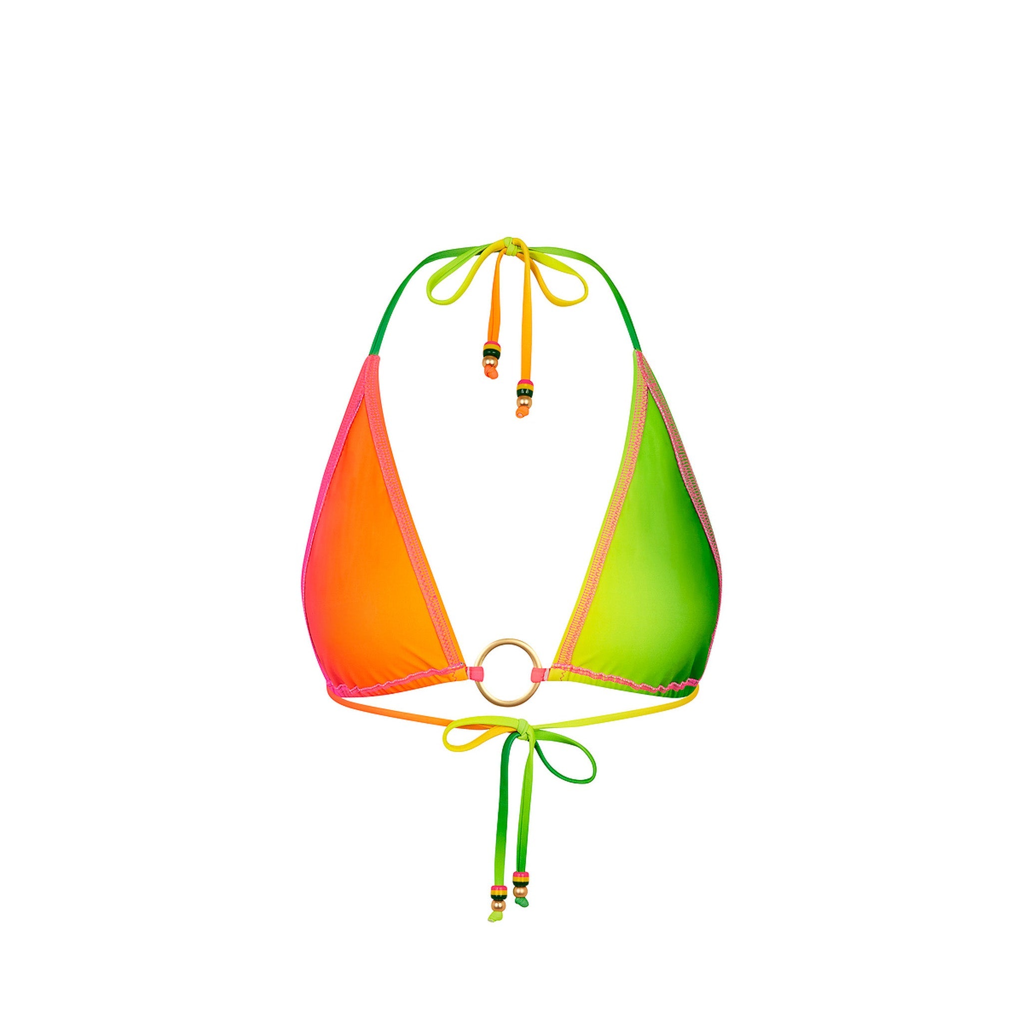 This halter bikini top takes a modern and sophisticated twist on the classic halter design, featuring an eye-catching centre O ring detail. It's simple yet flattering triangle fit is perfect for those who want a staple bikini for all occasions! Ideal for those who like to feel secure but also enjoy a minimal look.