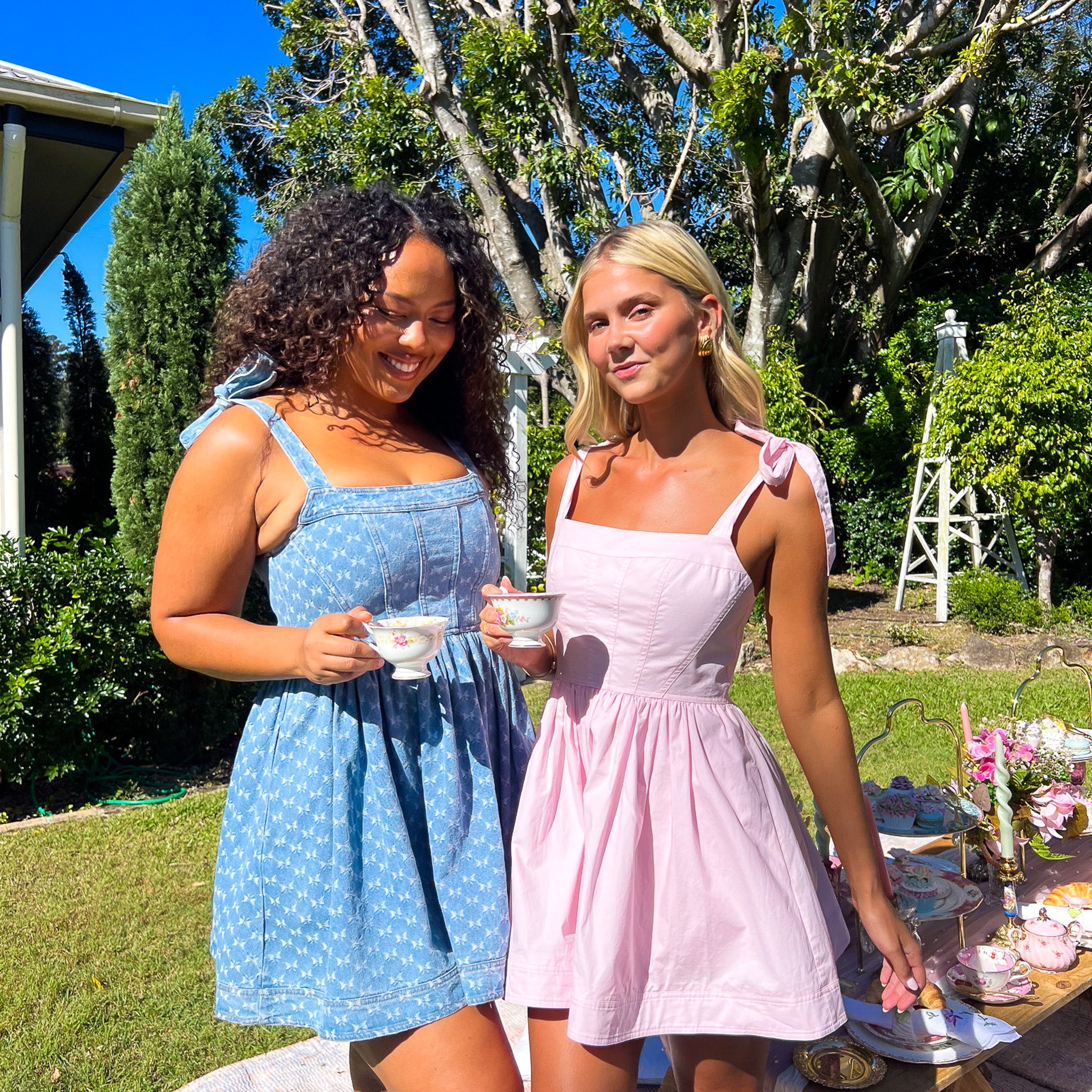 Sweet, romantic, and made for twirling - this is your ultimate girlcore moment. With a corset-style bodice, soft bow-tie shoulders, and a full ruched skirt, this mini dress brings major cupcake energy to your summer wardrobe.