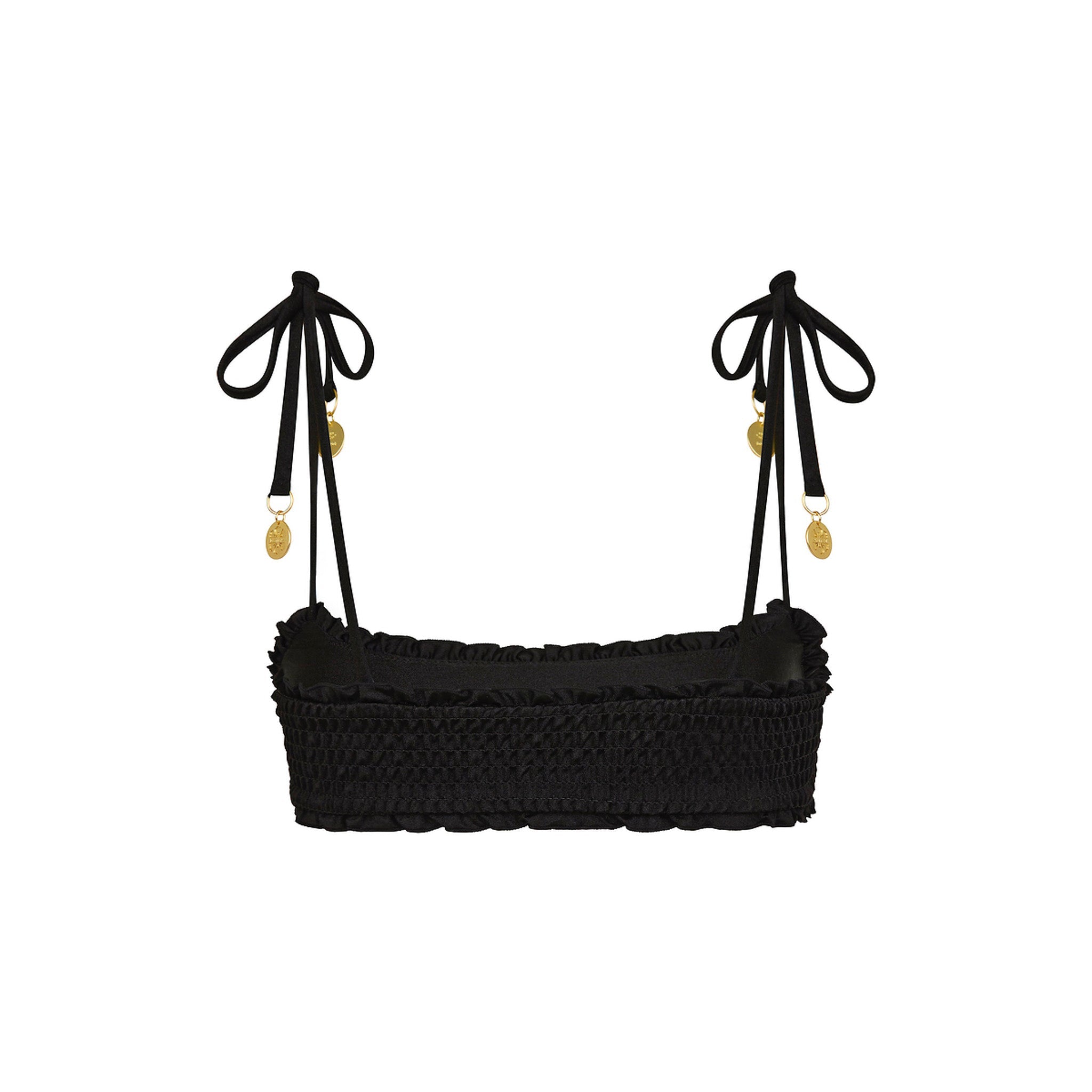 Chase the sun in style with our Shirred Crop Tie Bikini Top! This playful piece features a flattering slim crop shape, lettuce edge trim and textured shirring detail that brings all the beachy vibes.