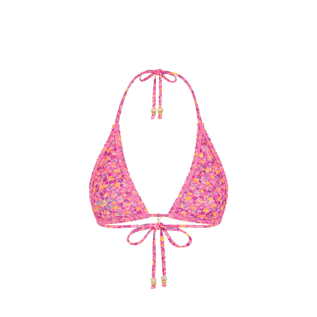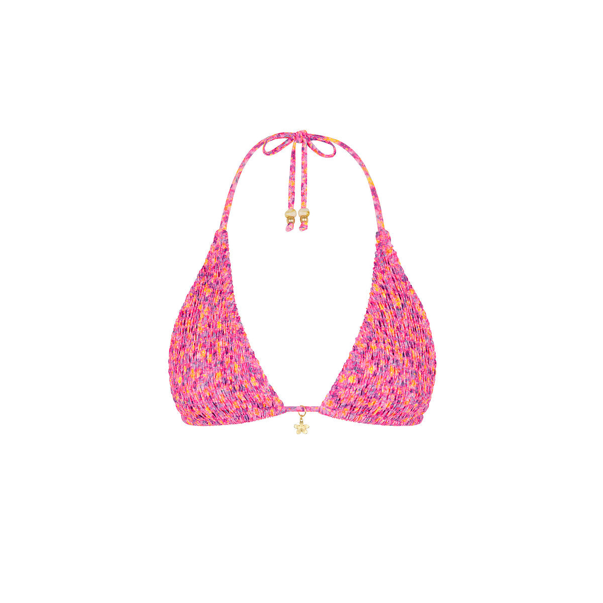 This is a halter triangle bikini top that offers complete adjustability making it a super easy fit! Finished with an ultra luxe shirring texture for added flair.