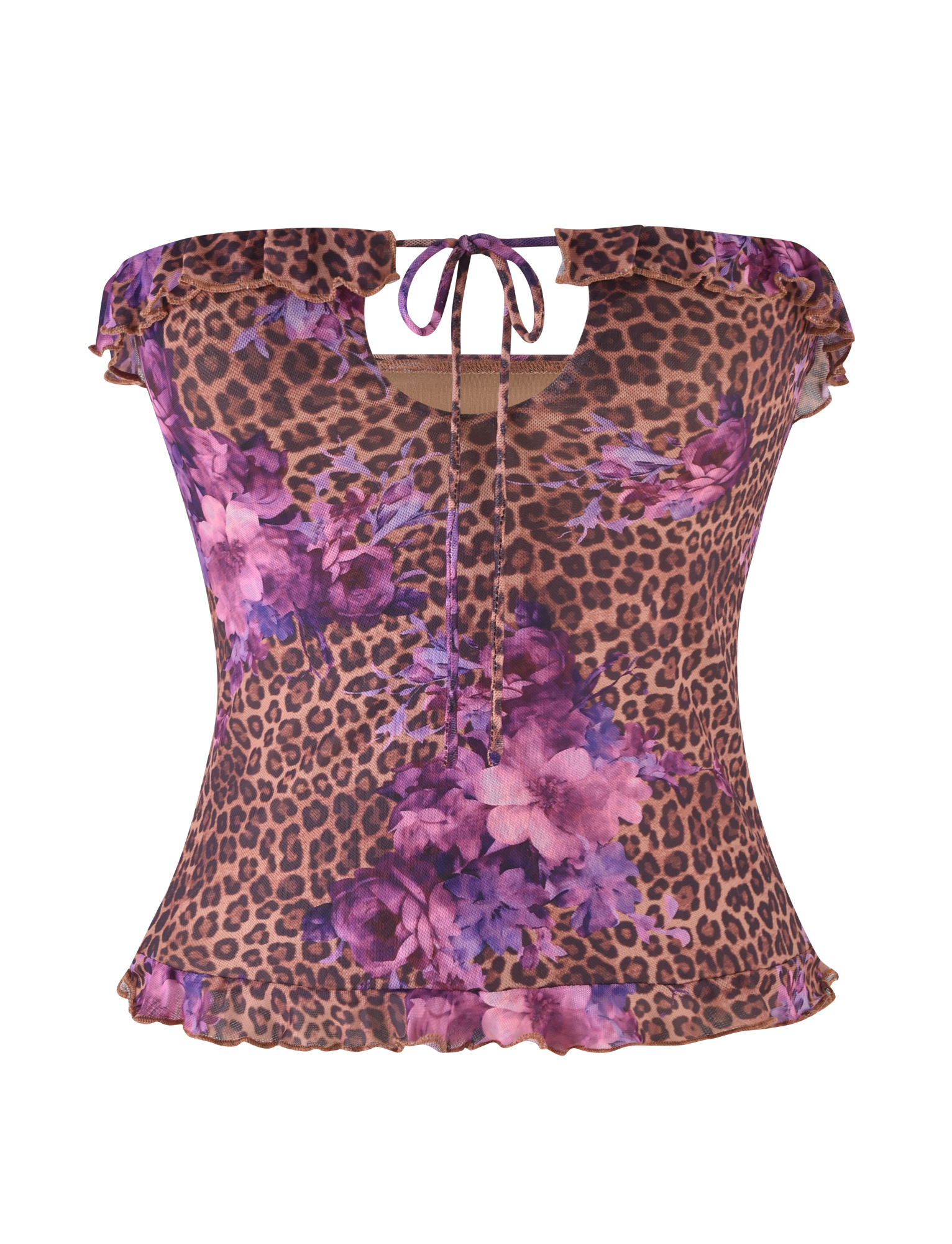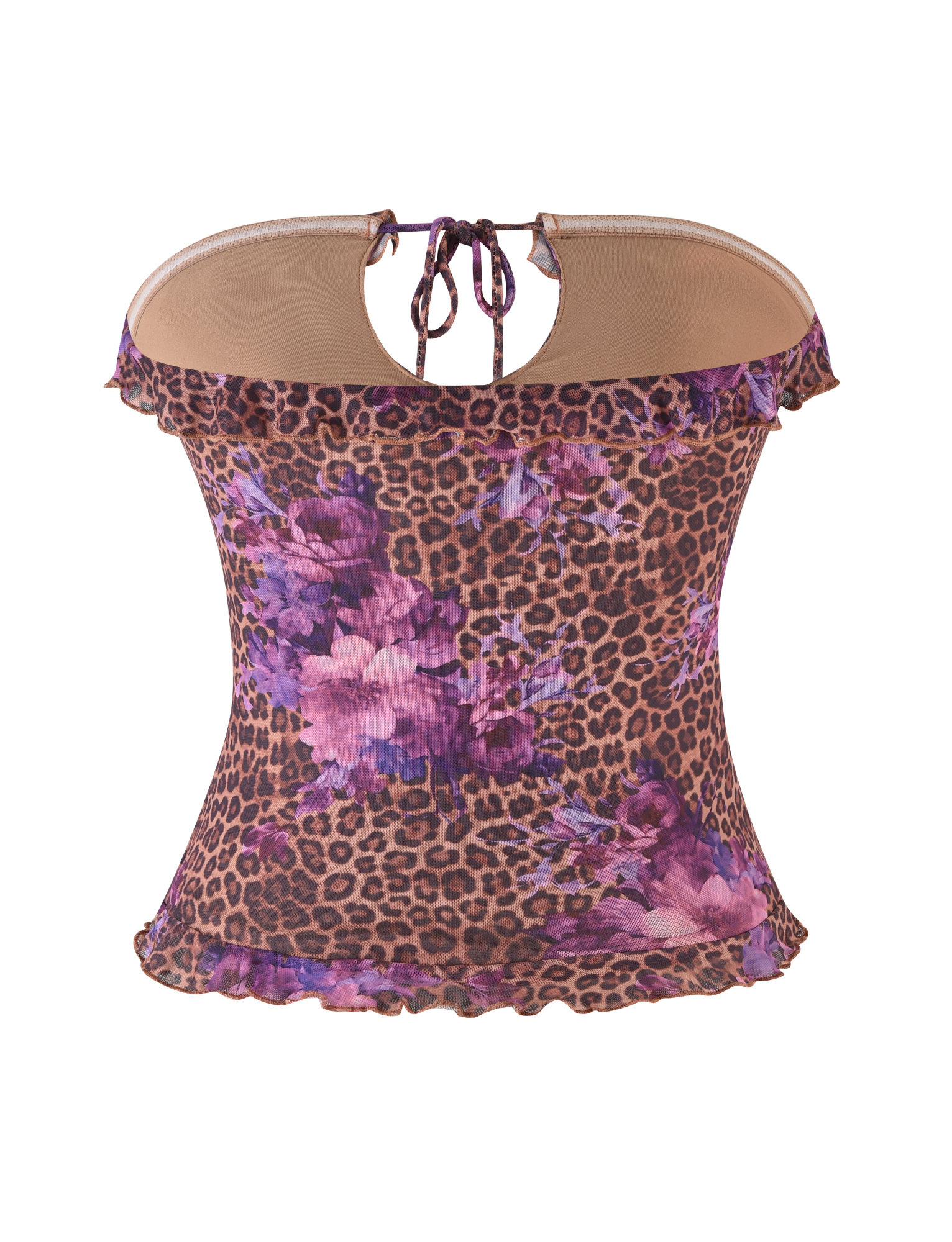 Strapless leopard and floral print top