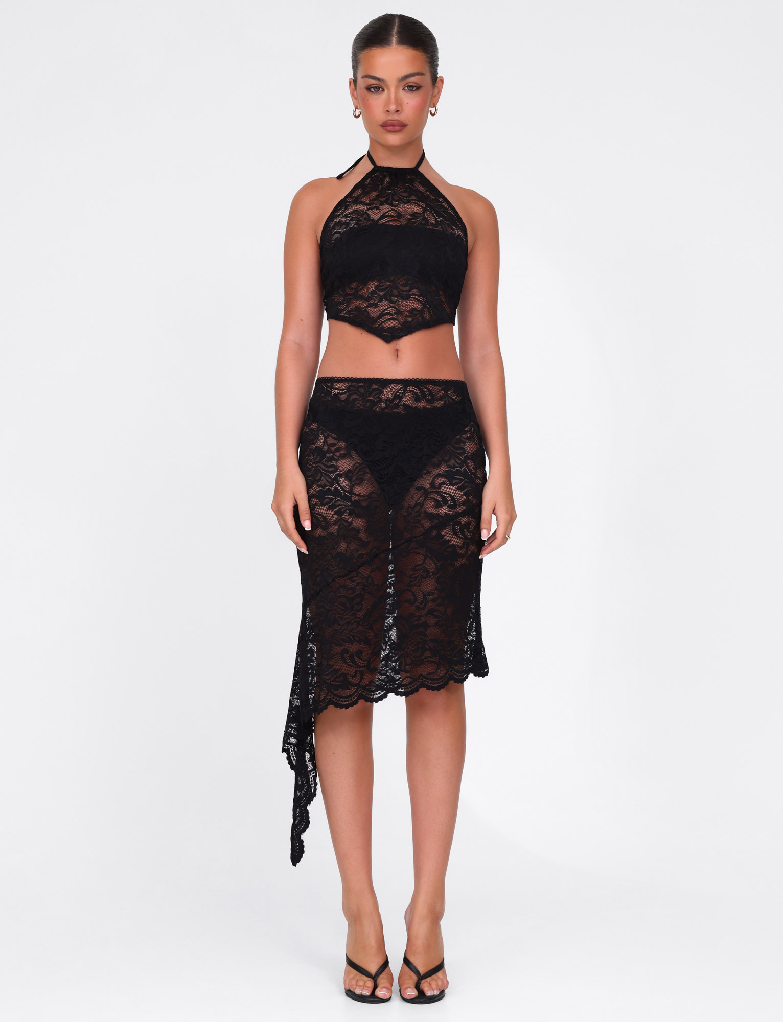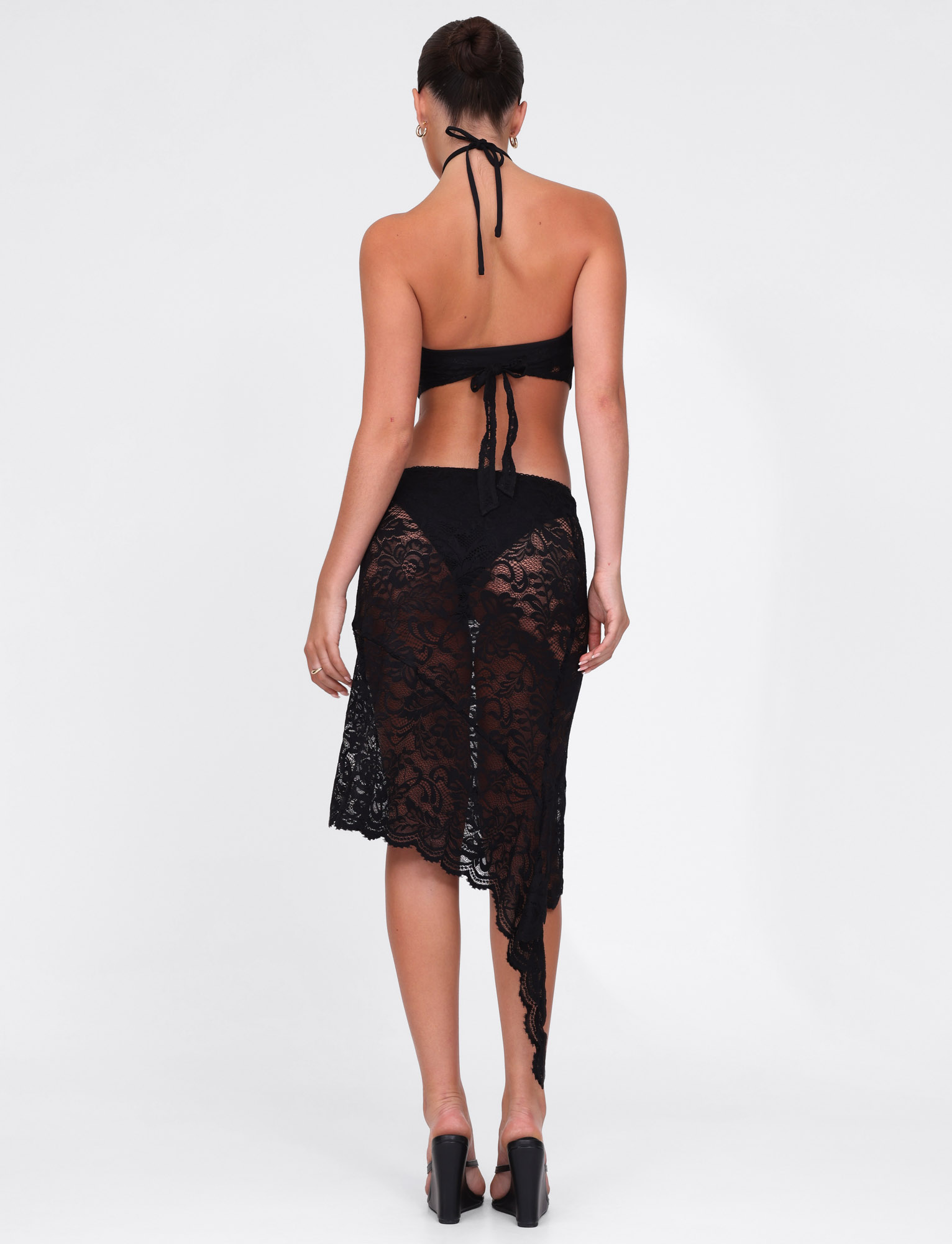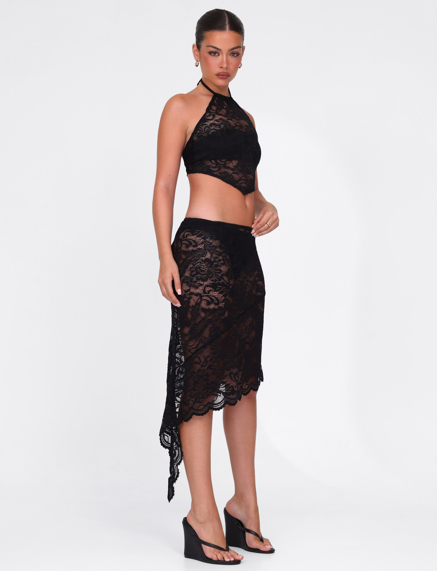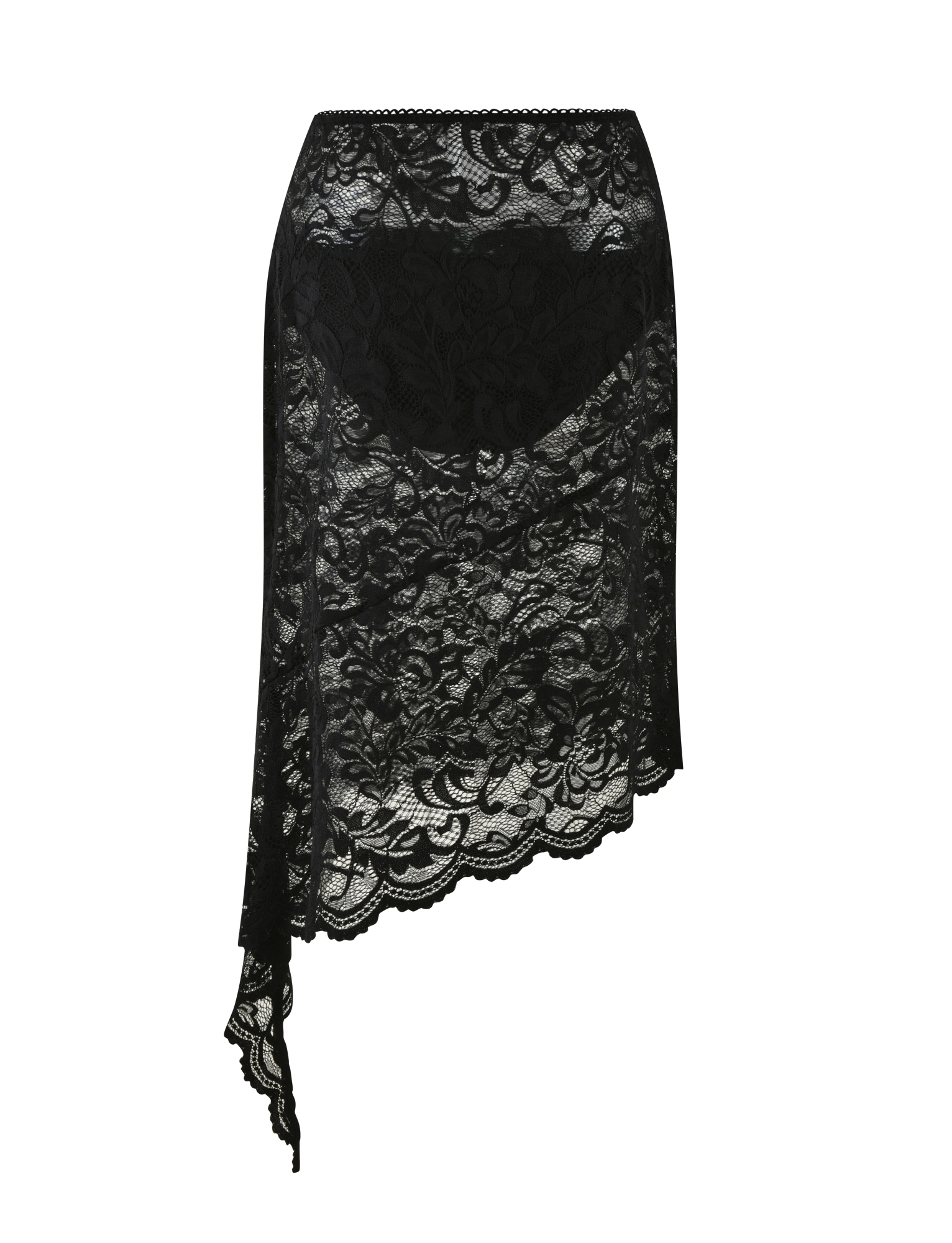Sheer lace midi skirt in black