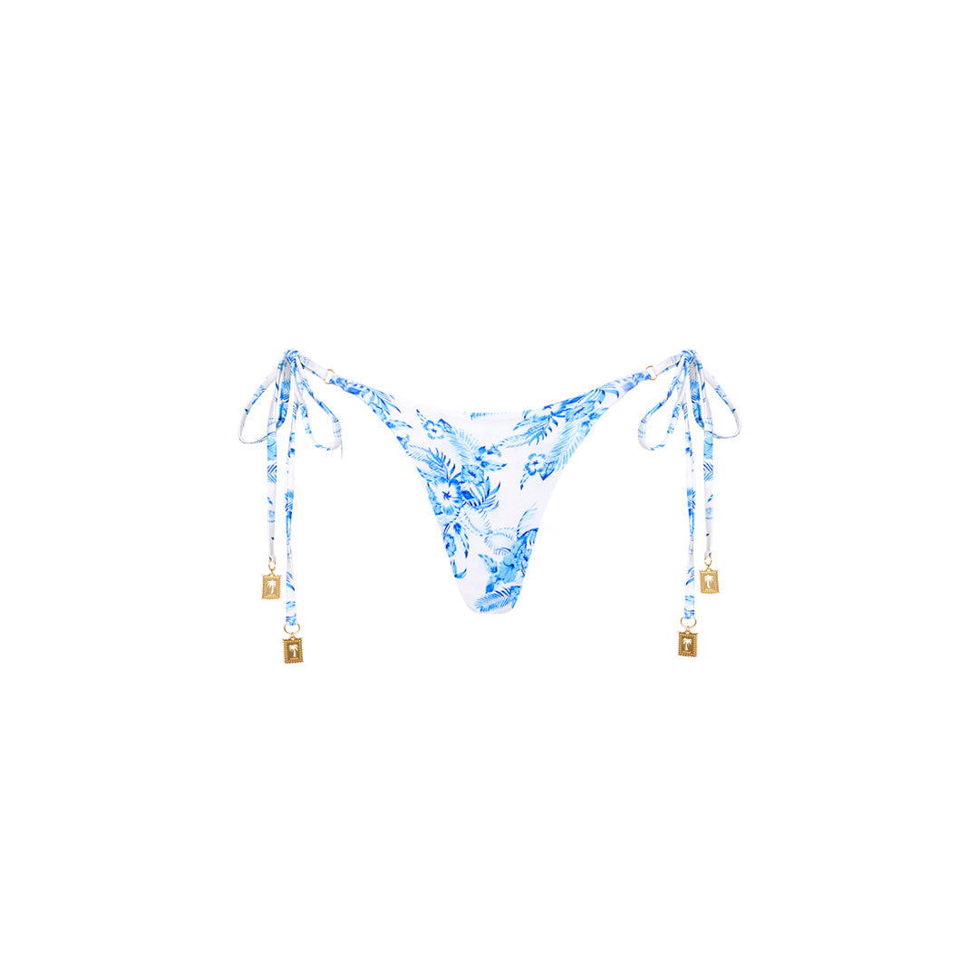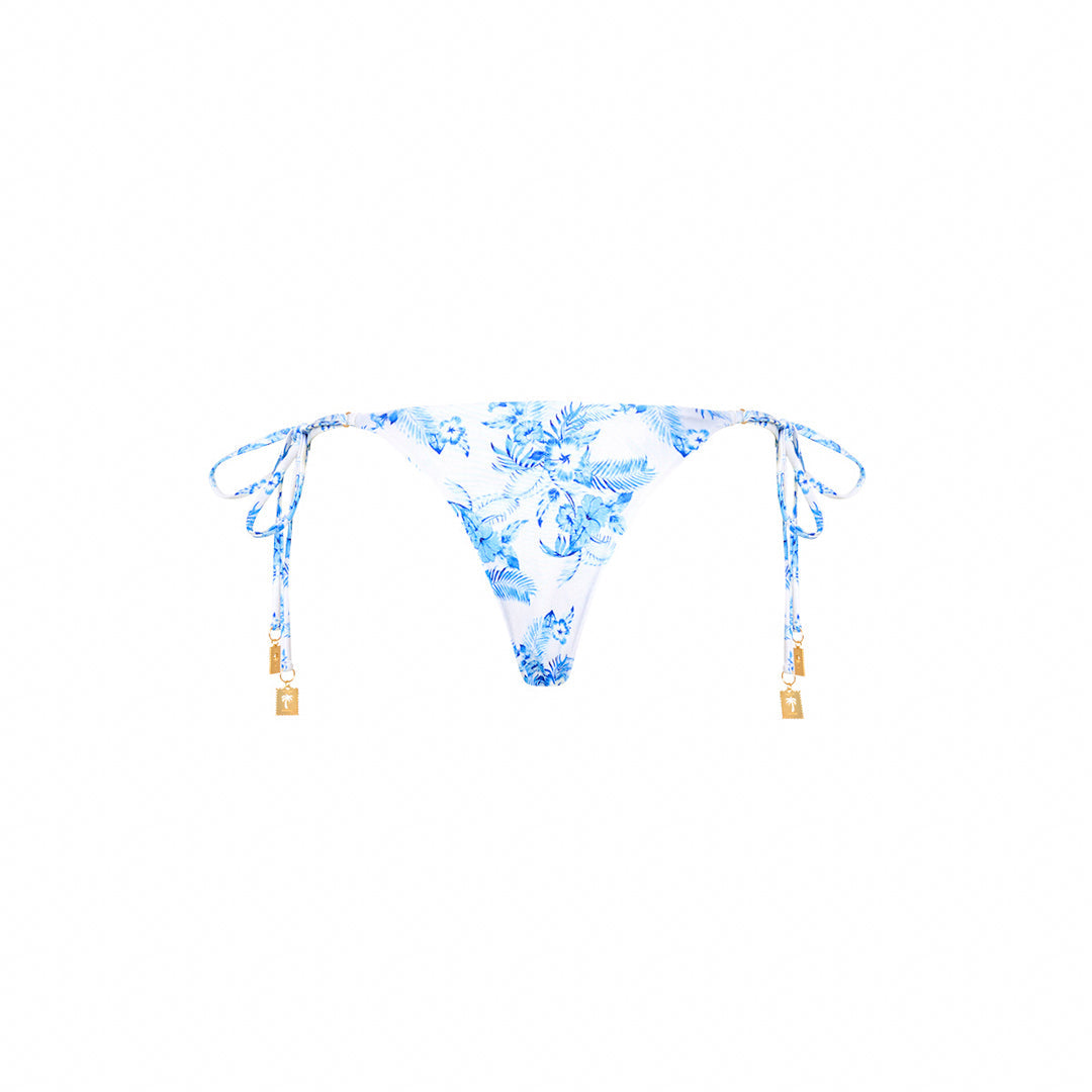 This is a thong cut bottom that is perfect for laying out in the sun and keeping tan lines low! Girls who buy this bottom aren't worried about bum coverage and enjoy a minimal front look. The majority of our customers prefer to size up one in this style for optimal comfort!