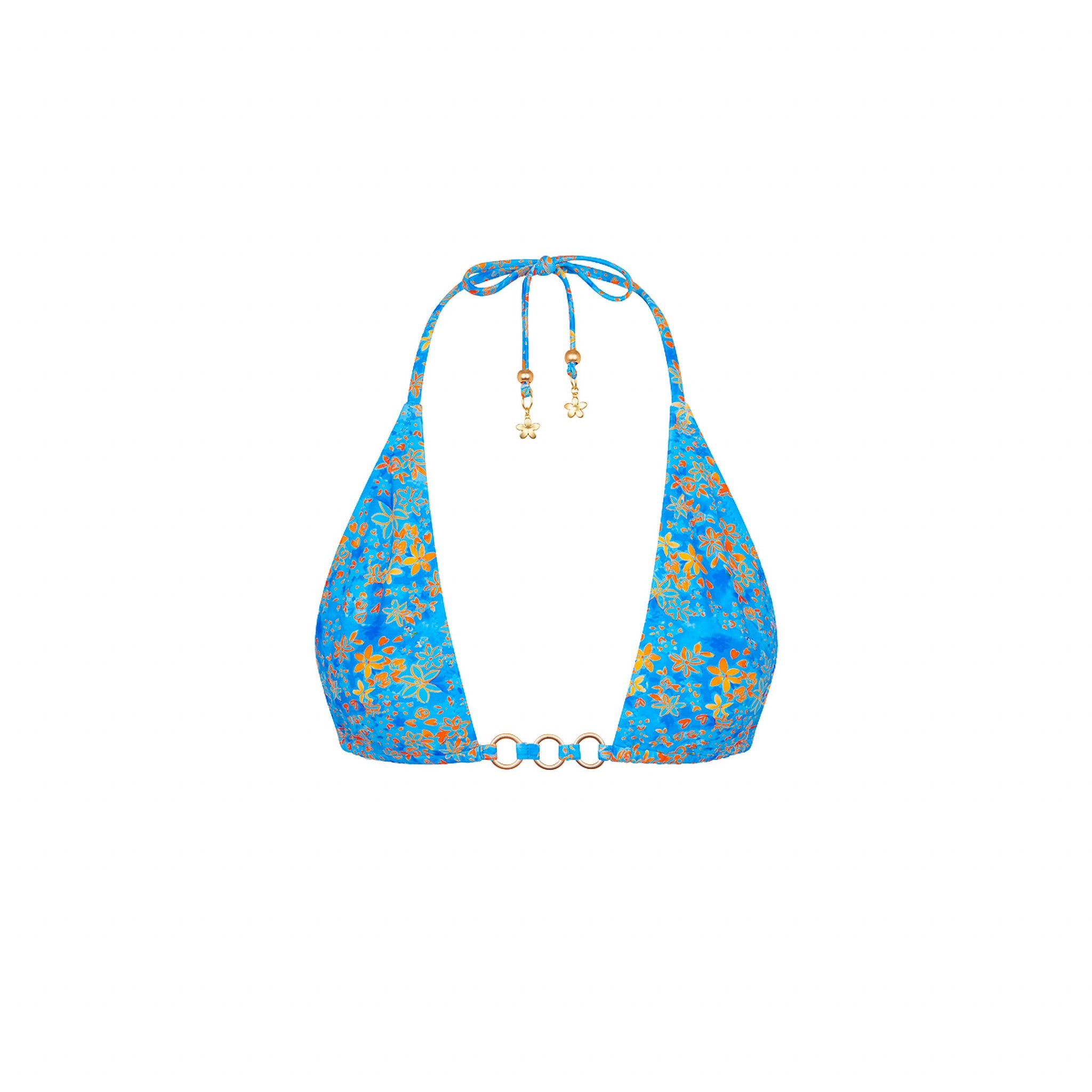 This halter bikini top is a sophisticated twist on the classic halter design, featuring an eye-catching detail of mini O-rings in the centre. It's simple yet flattering triangle fit is perfect for those who want a staple bikini for all occasions!