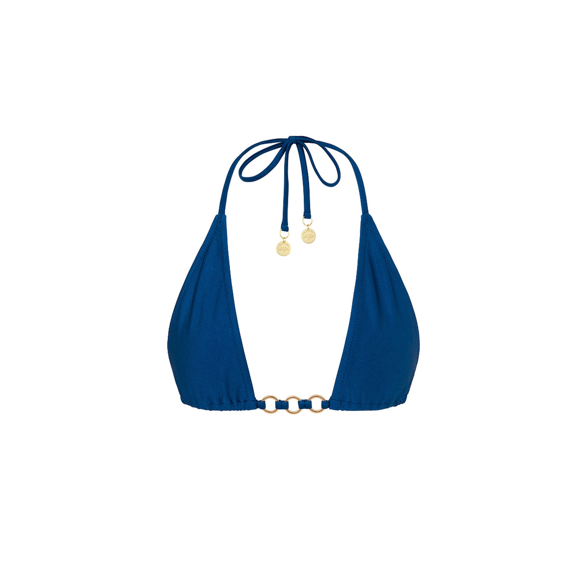 This halter bikini top is a sophisticated twist on the classic halter design, featuring an eye-catching detail of mini O-rings in the centre. It's simple yet flattering triangle fit is perfect for those who want a staple bikini for all occasions!