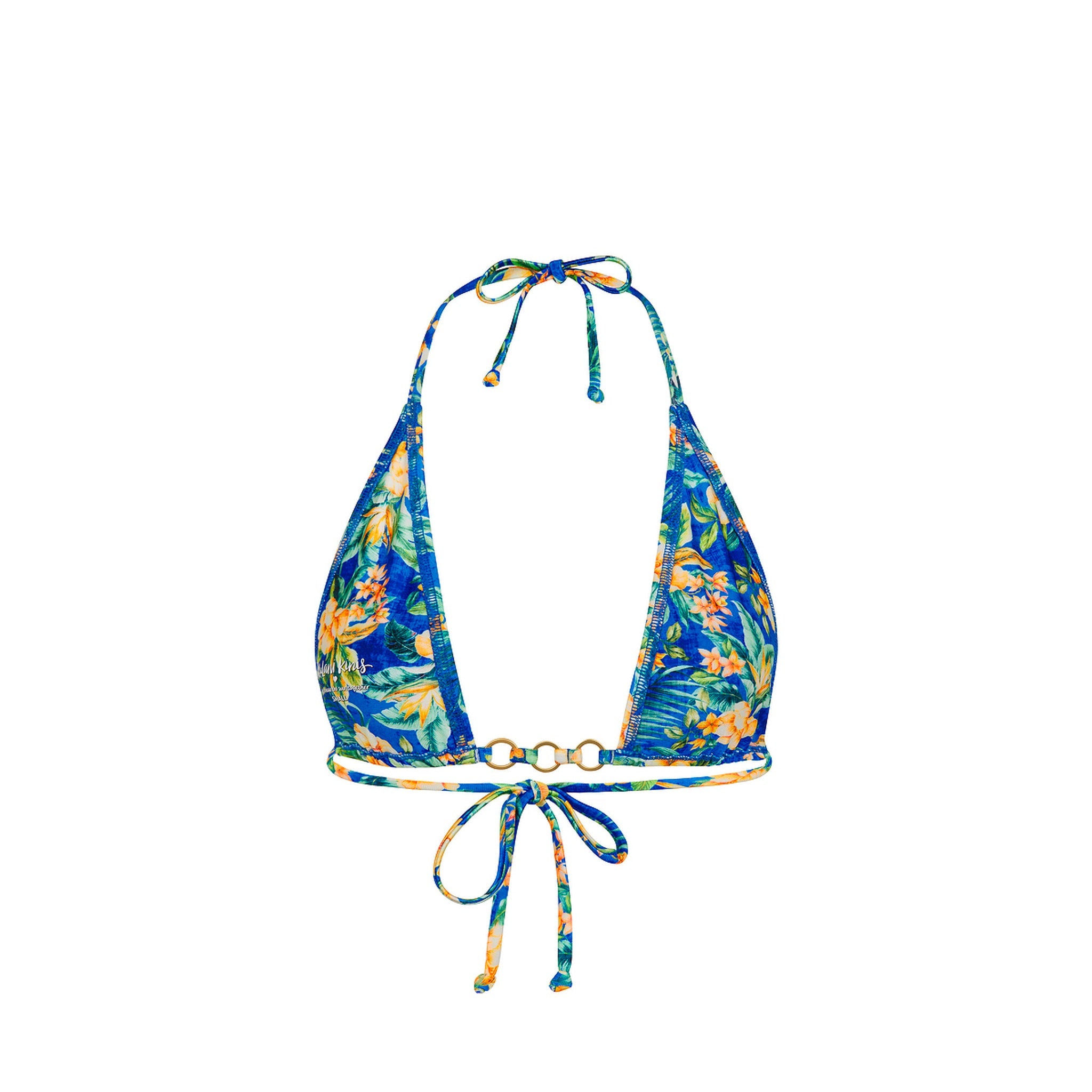 This halter bikini top is a sophisticated twist on the classic halter design, featuring an eye-catching detail of mini O-rings in the centre. It's simple yet flattering triangle fit is perfect for those who want a staple bikini for all occasions!