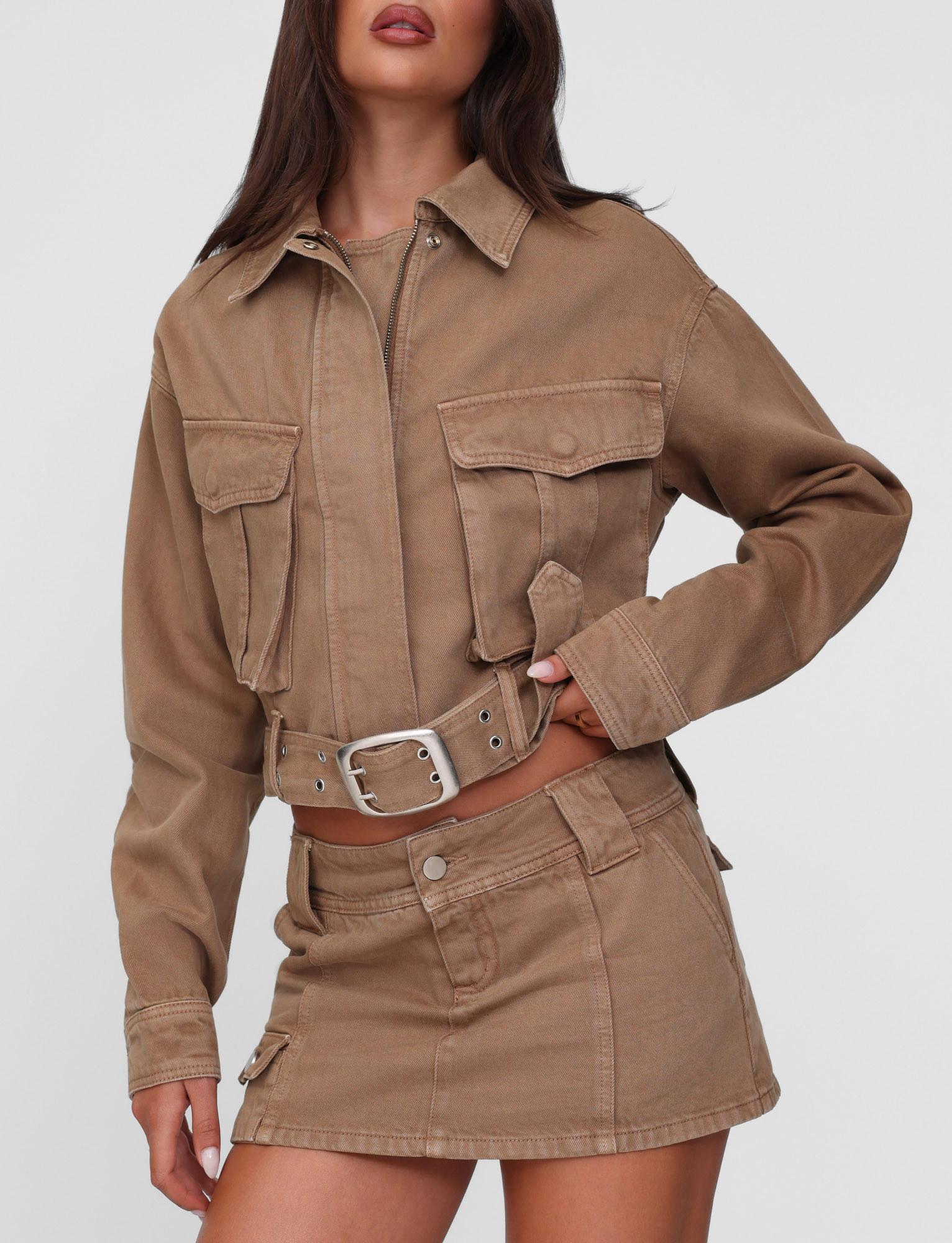 Washed tan utility mini skort